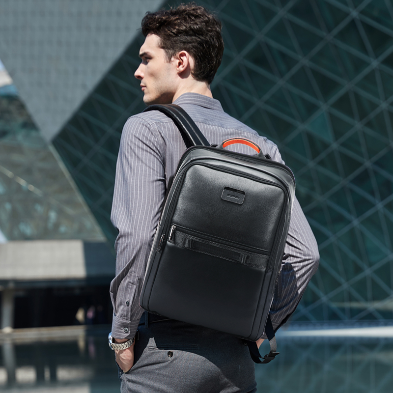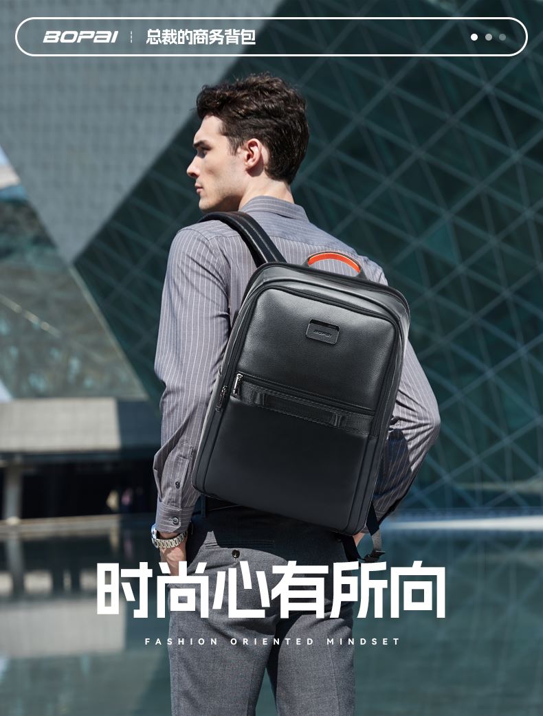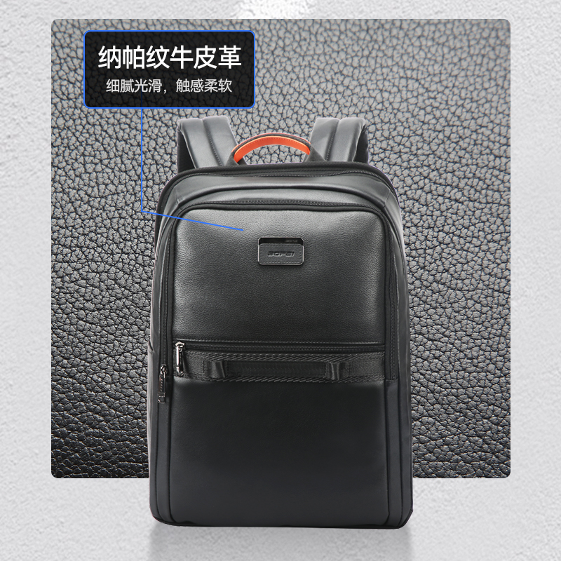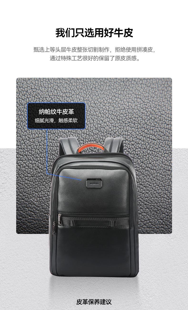 博牌双肩包头层牛皮商务背包男士电脑包61-131711