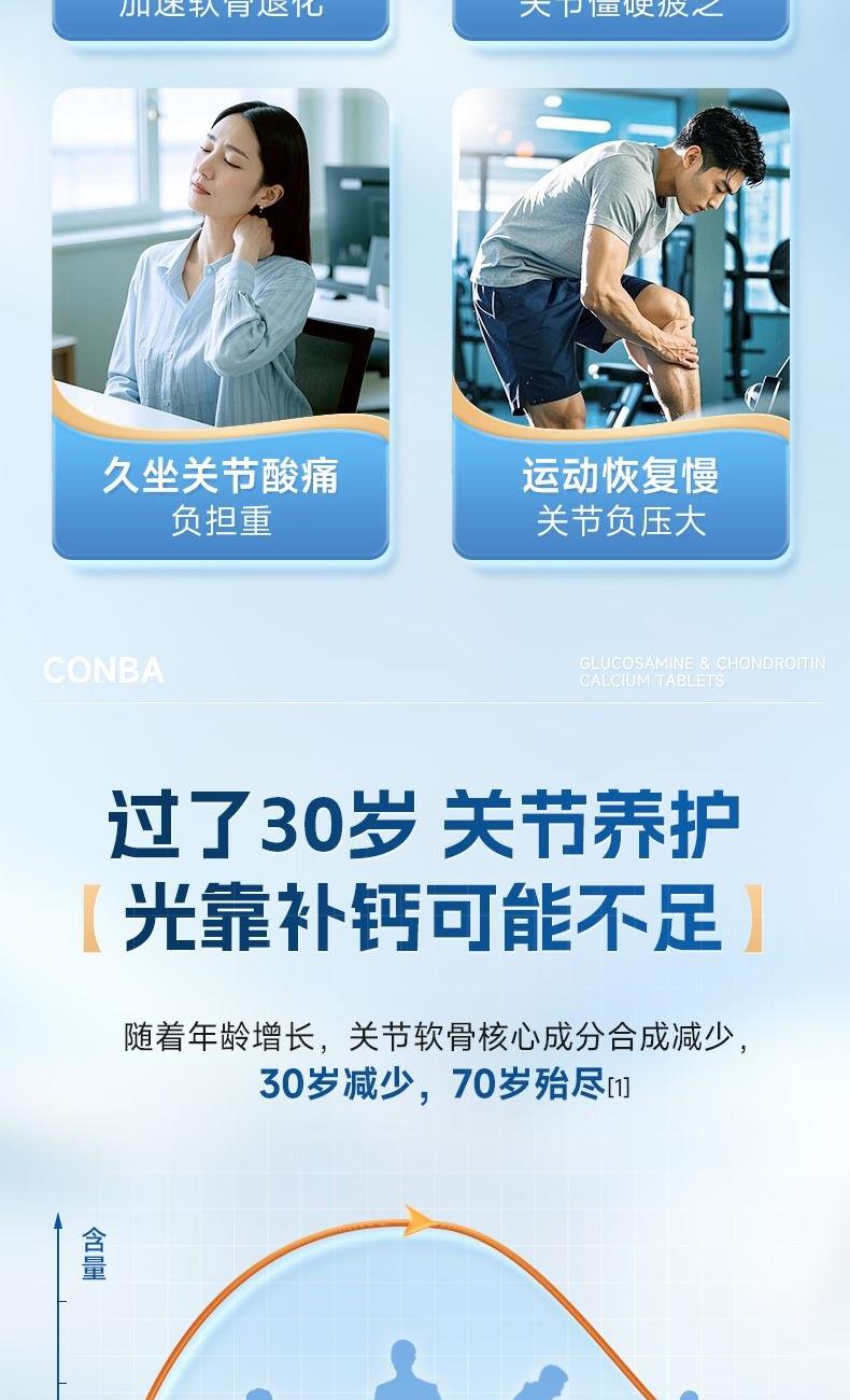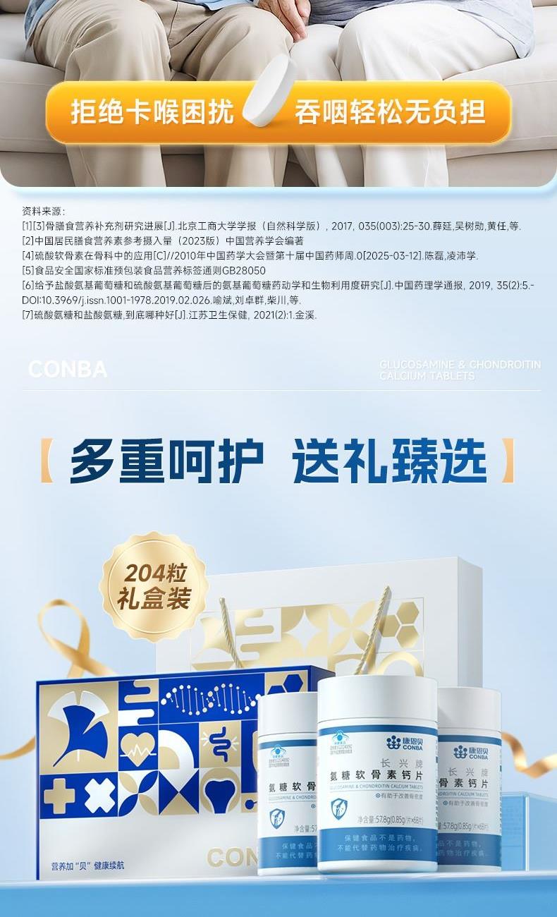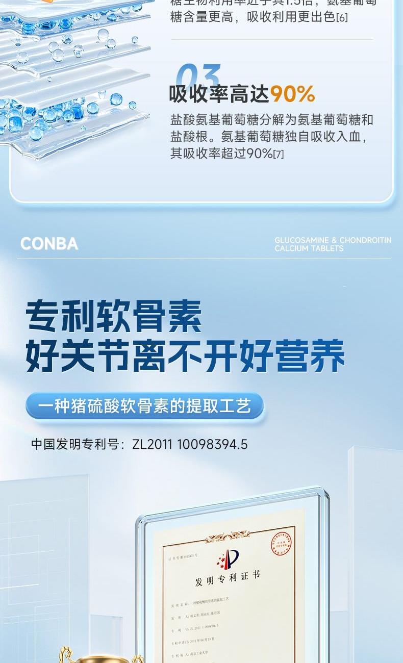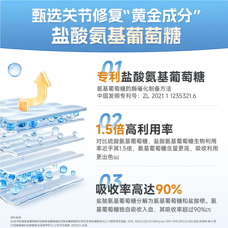 0.85g/片*68片*1 三重营养协同强健骨骼:盐酸氨基葡萄糖+硫酸软骨素+钙 2项发明、1.5倍超高生物利用度 颗粒小巧精致顺滑入喉,食用轻松