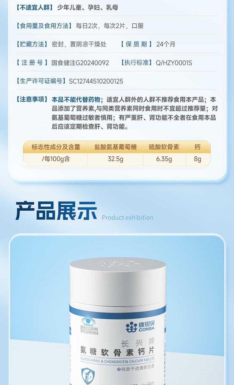 康恩贝长兴牌氨糖软骨素钙片(68片)-氨糖