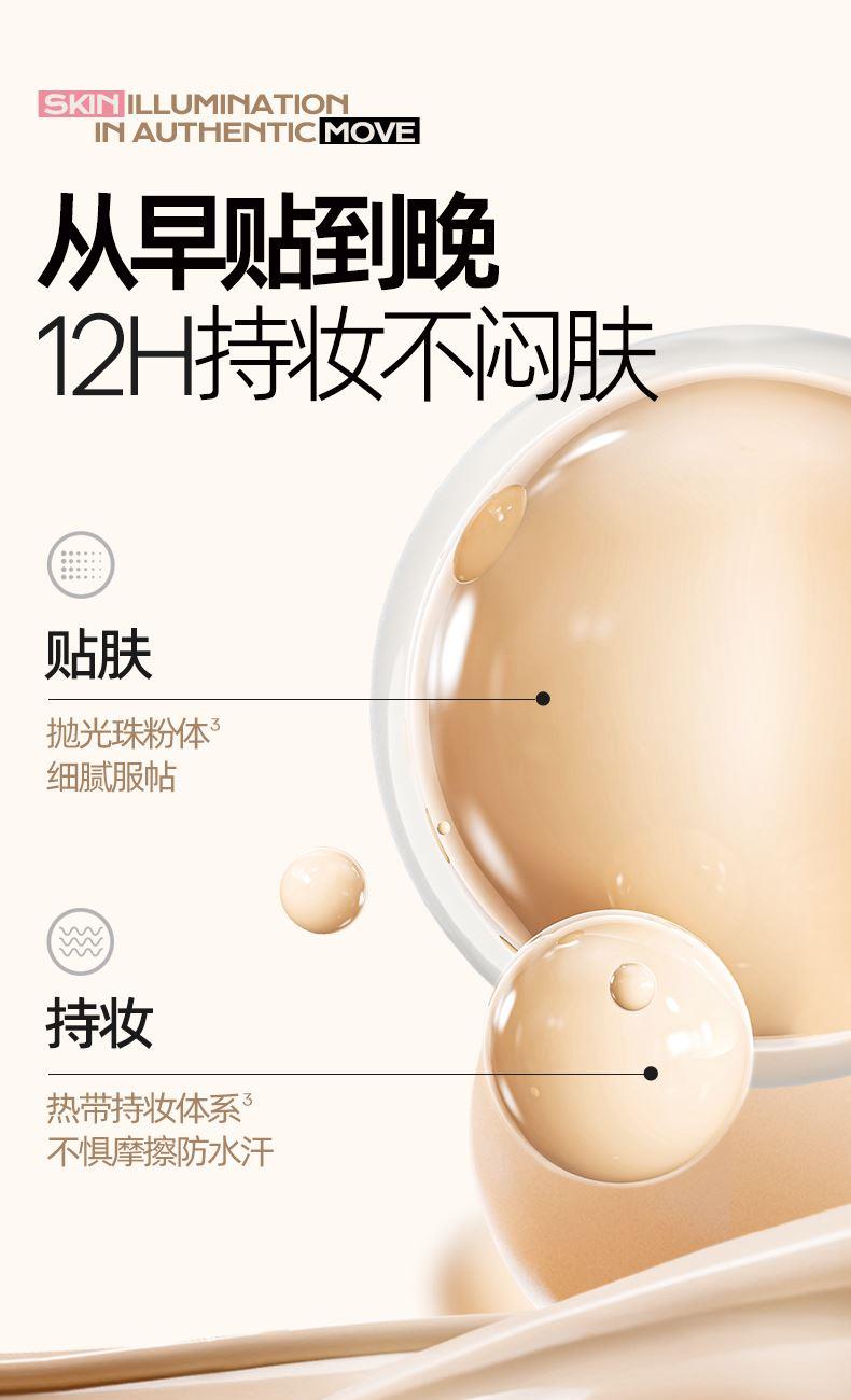 1.奶润 两万目网纱科技处理工艺,超柔软触感 料体与精华同时被细细过滤后筛出,上妆好像上面霜 2.细腻 40MM直径内大约有25000个微小孔径 出料更细密,铺开底妆好像会呼吸 3.遮瑕 2.29mm/s出料速度,出料更细更多 多倍遮瑕,柔焦平整肌肤,瑕疵看不见 创新加入“抛光珠”粉体*薄薄一层,给肌肤做一次抛光SPA p 在粉底液使用前中后,不断自动化研磨,冲散集聚粉体,使得粉质细腻丝滑易延展; p 同时粉体表面进行“抛光工艺处理”,粉体自带通透感,上脸给肌肤做一次抛光SPA,上妆无遮盖粉感,只见通透光感