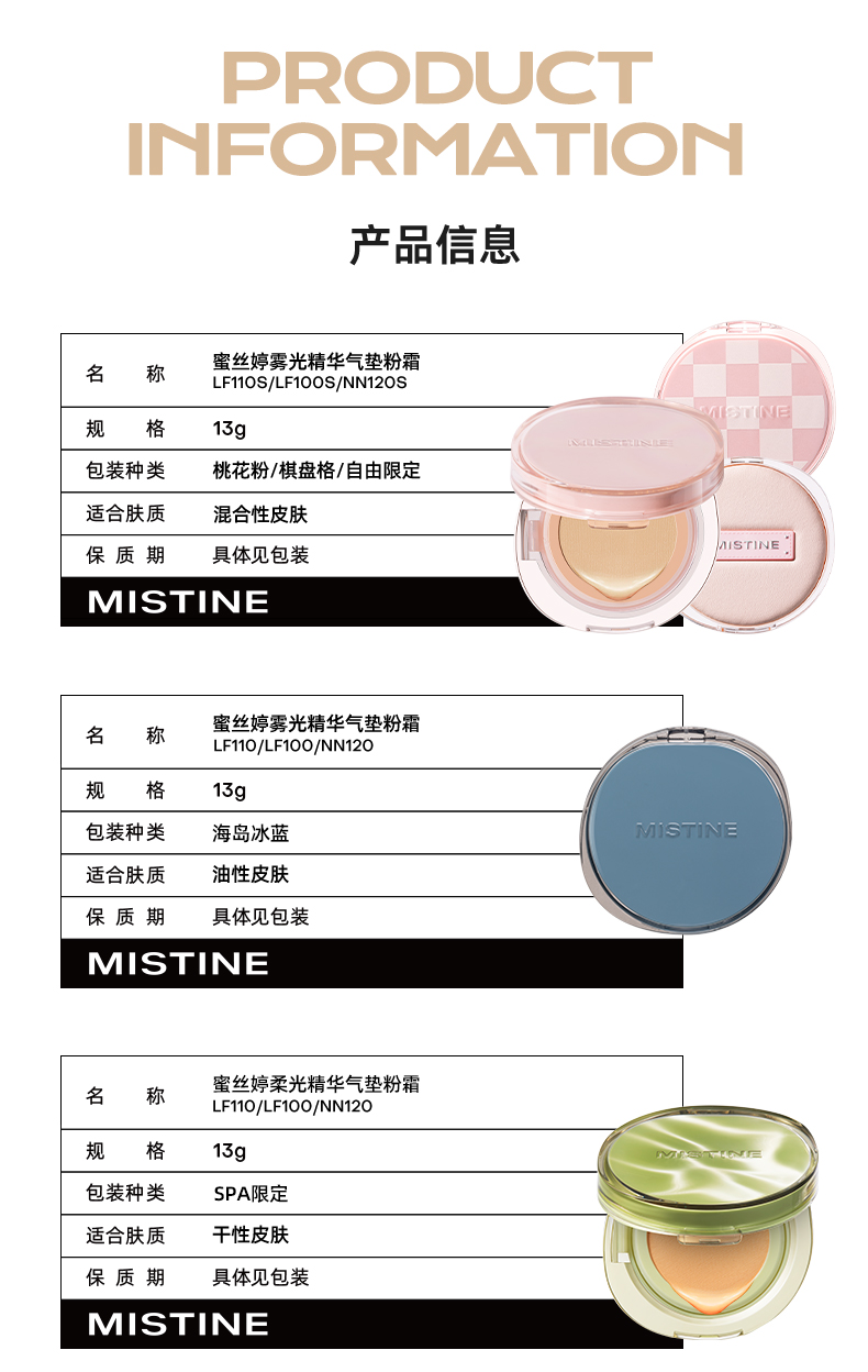 • 蜜丝婷雾光精华气垫粉霜(自由限定)NN120S