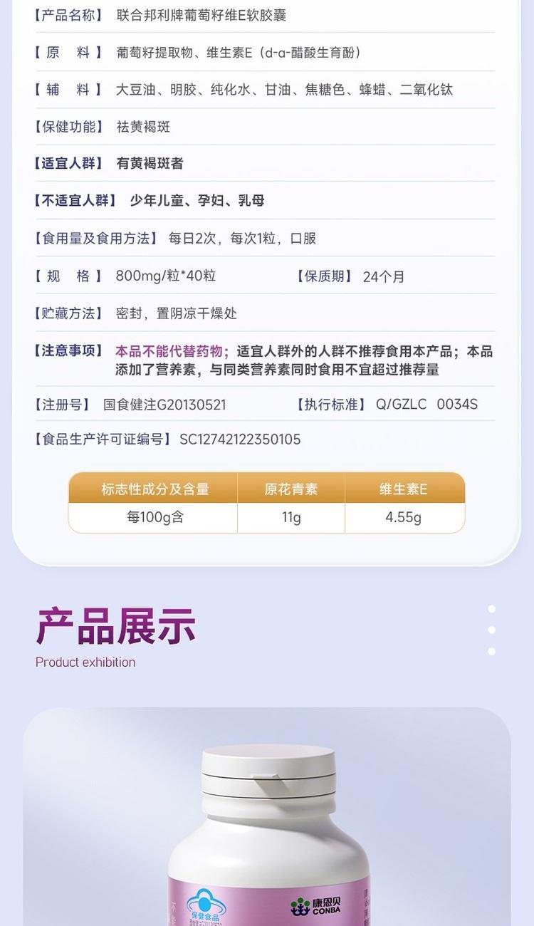 800mg/粒*40粒 高含量配比营养不掉队 新升级葡萄籽+VE由内而外祛黄褐斑 配方干净 植物为本 自然提取