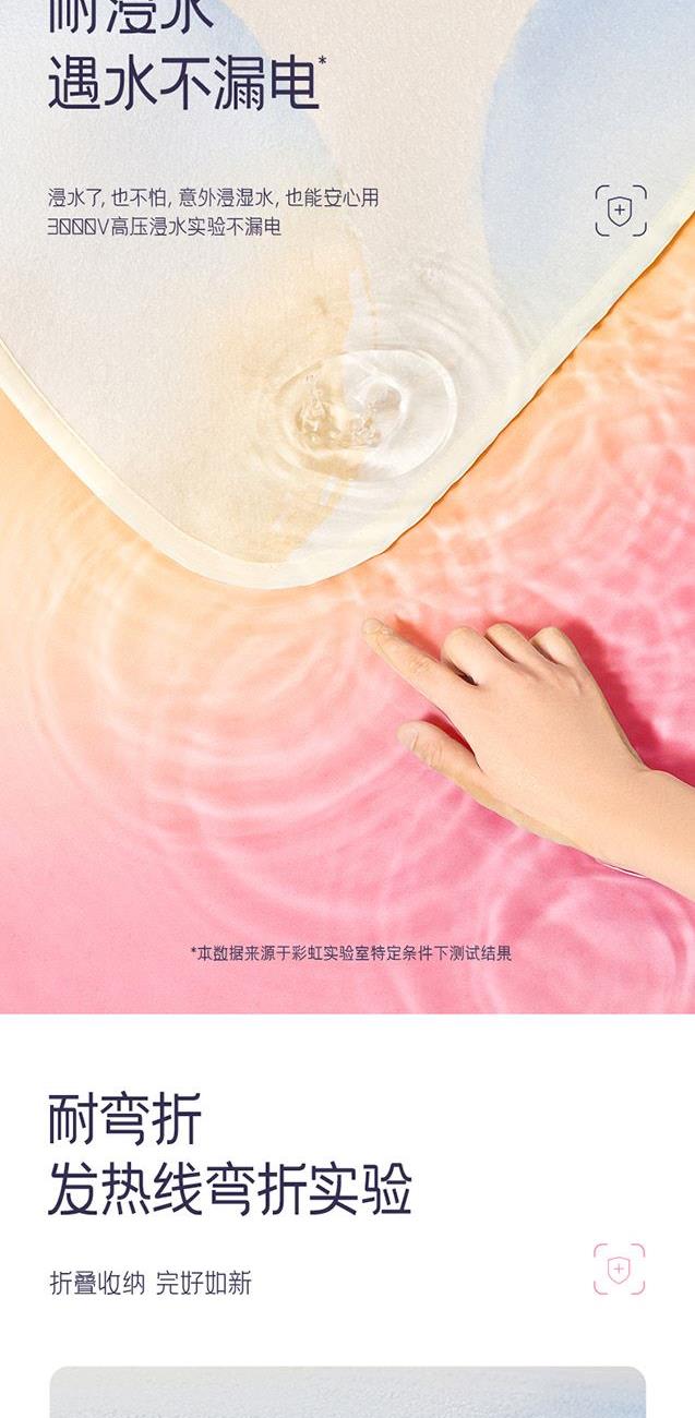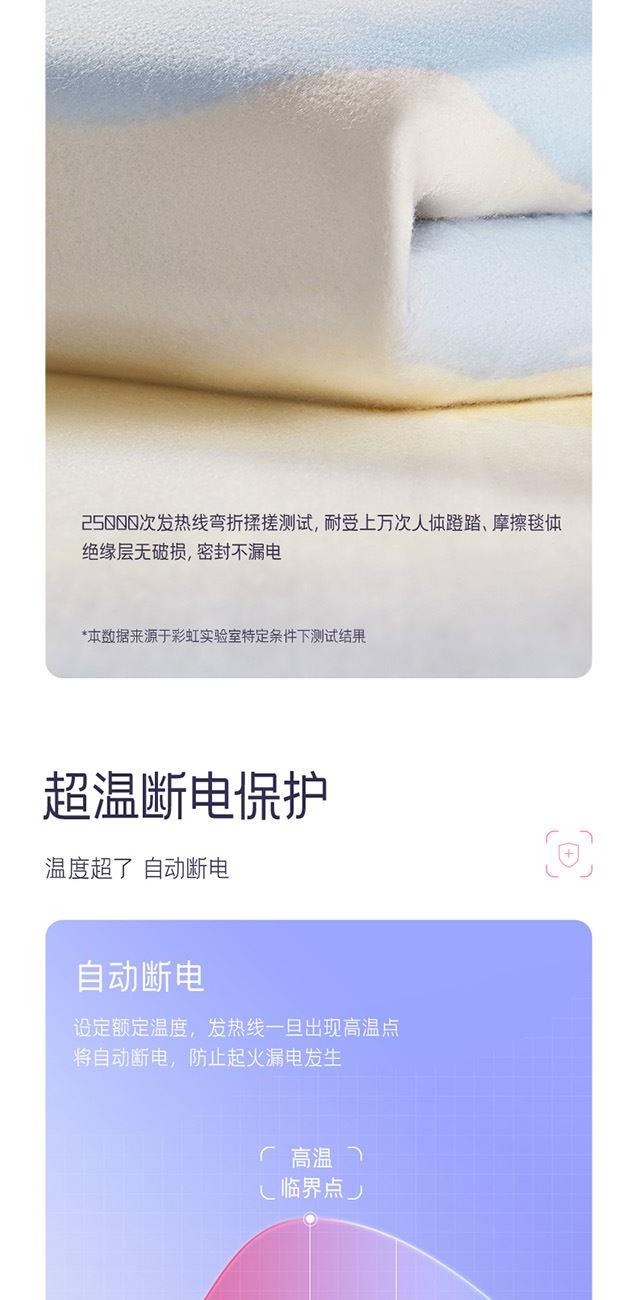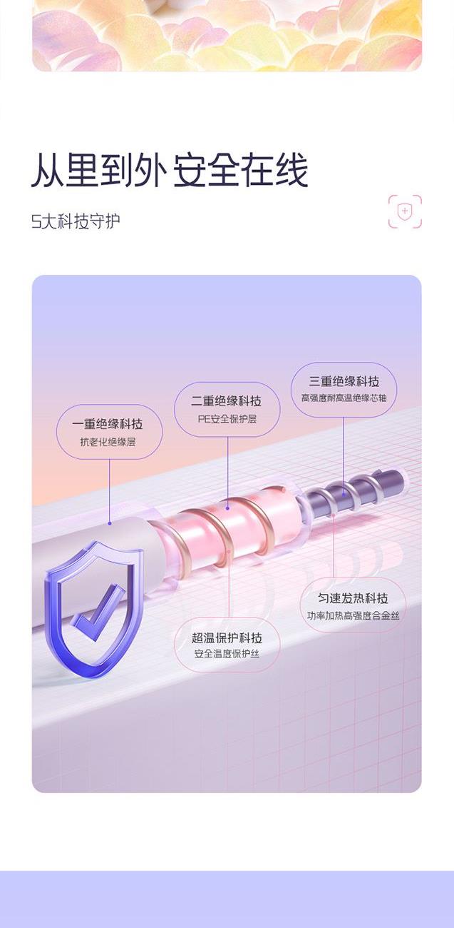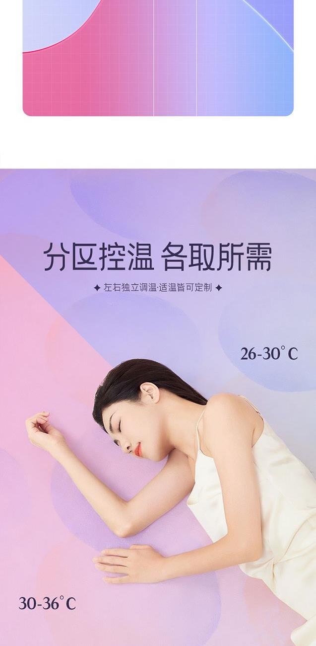 参数: 型号:TT180×150-10XB 功率:150W 功能:高、中、低温三档调节,一键除螨,排潮除湿。 开关:双控双温,可定时。 面料:化纤 包装:彩盒 卖点: 1、多档定时控制 2、左右独立温控 3、一键安全除螨,2小时自动停止加热 4、全线路安全保护,助力安心好眠 5、排潮除湿,四季可用 6、低能耗,每晚不到1度电