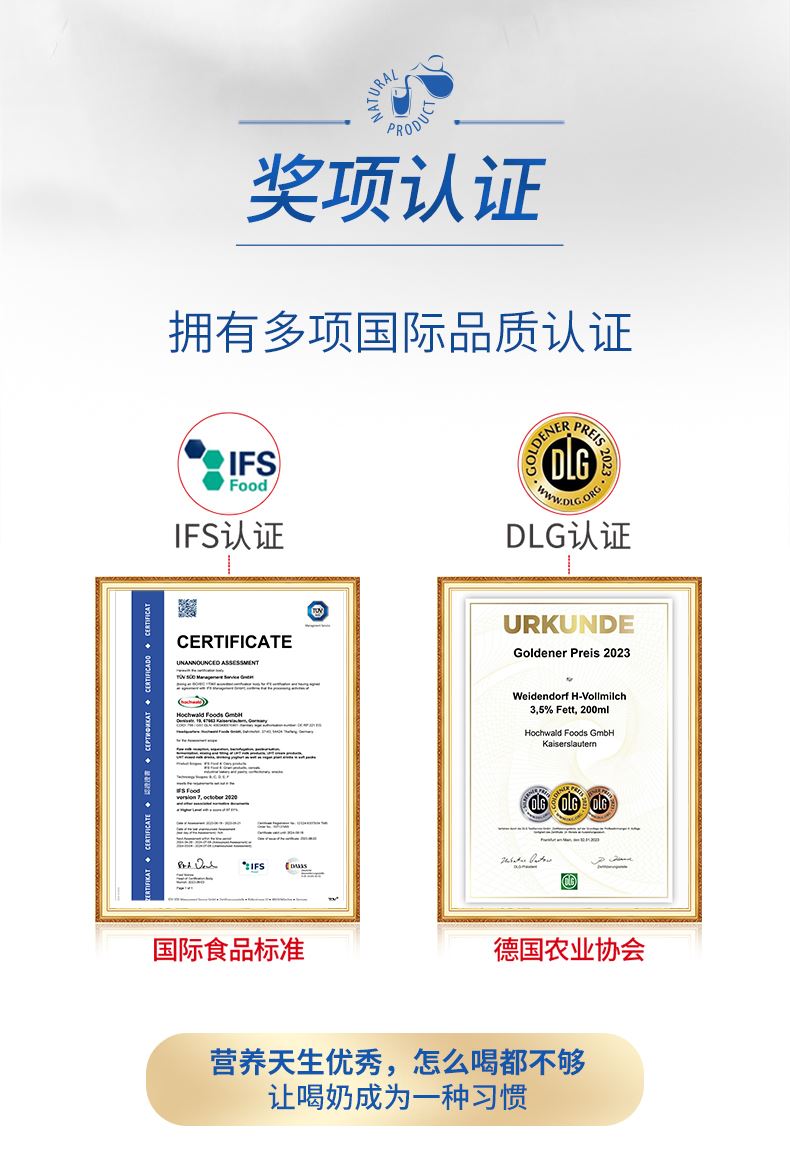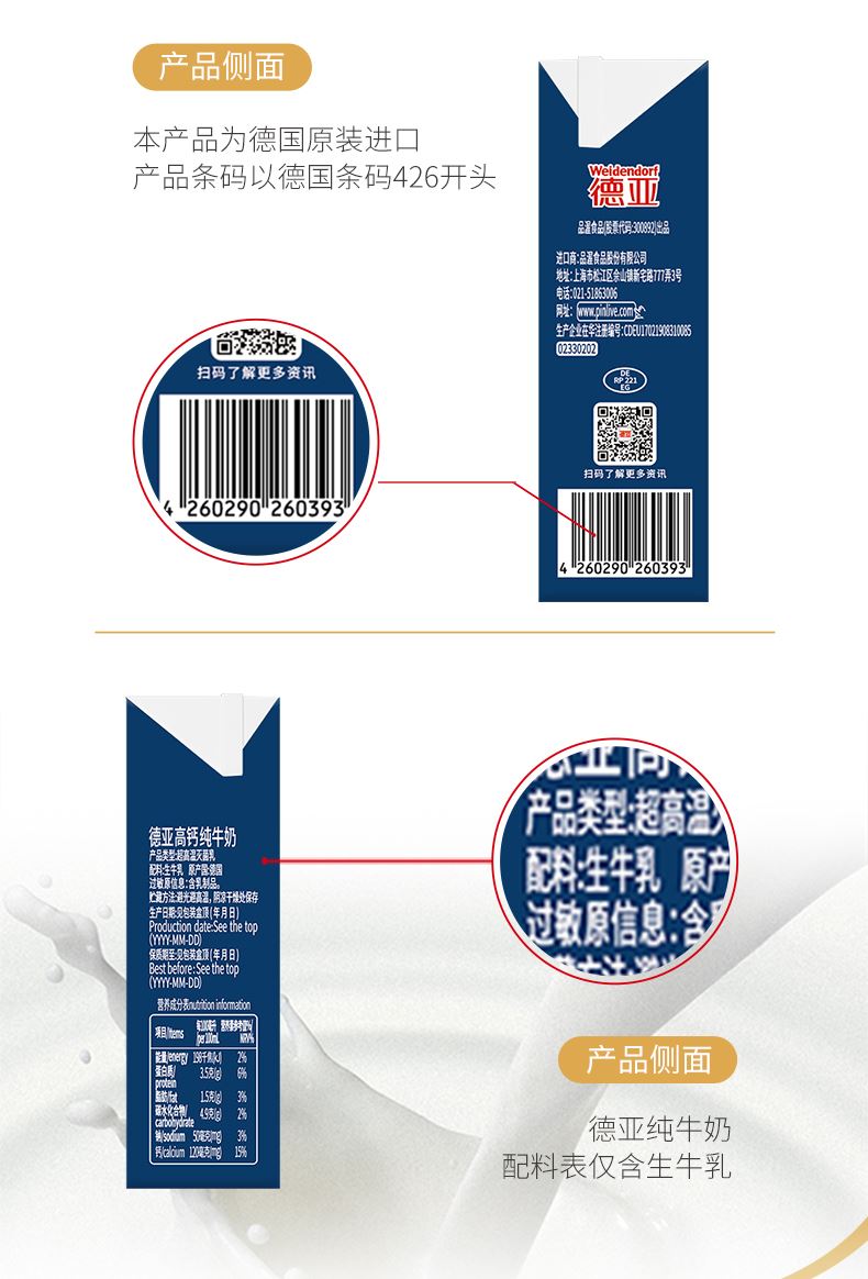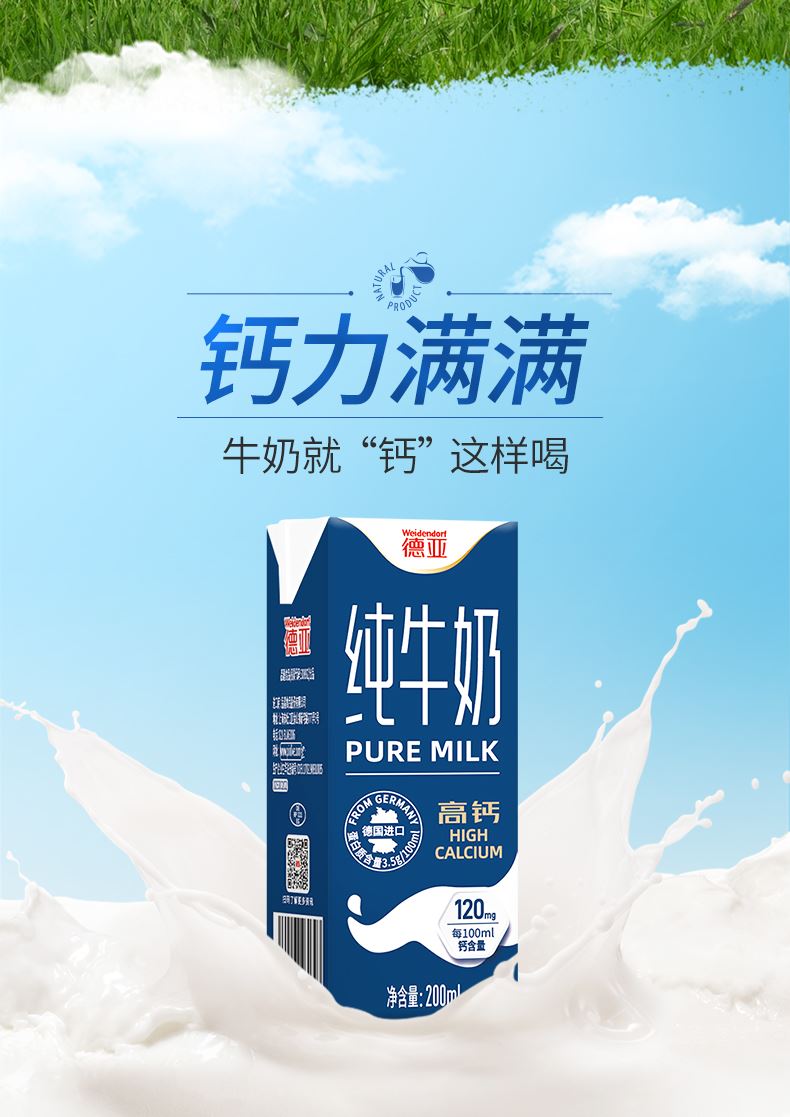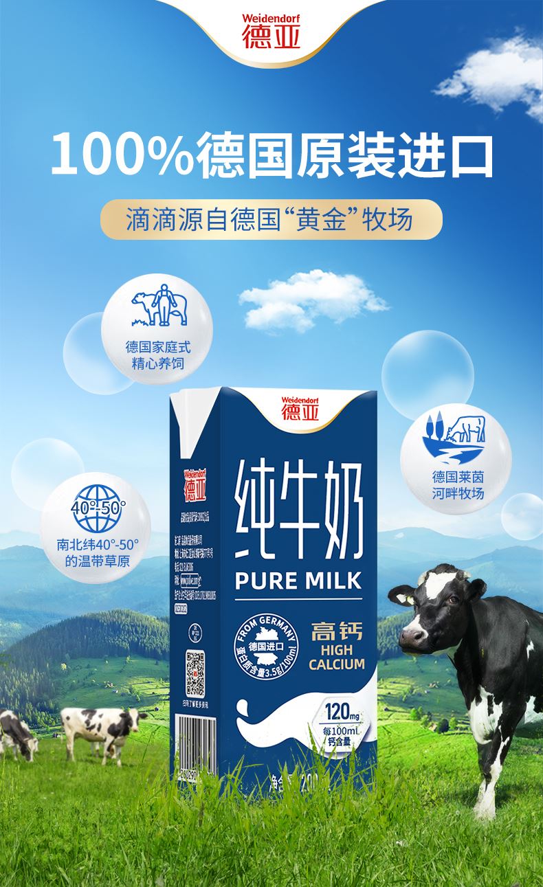 德国进口欧洲牧场低脂高钙纯牛奶
