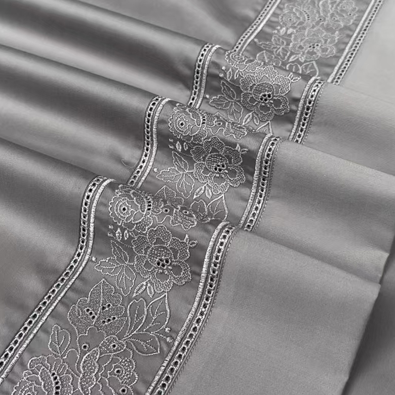 床单:250x260cm 被套:200x230cm 枕套:48x74cm 【面 料】新疆长绒棉 (160支长绒棉) 产品特点: 1. 面料选用160支新疆长绒棉,棉中奢品,高支高密,蚕丝般丝滑,柔软舒适; 2.重工镂空刺绣工艺,灵动奢华,勾勒不凡艺术品味; 3.活性印染,环保,色牢度高,不易褪色; 4.床单圆角贴边设计,品质。
