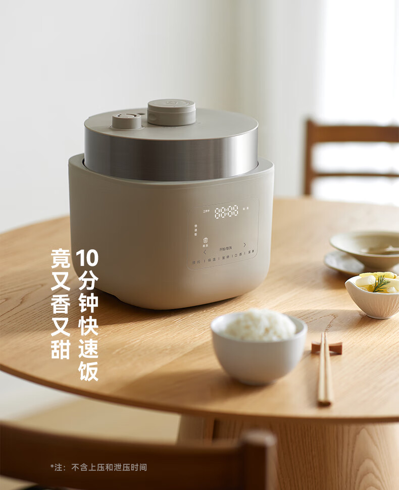 颜色:大地色 容量:4L 重量:6.8KG 内胆:单胆-陶瓷釉 额定功率:1000W 产品尺寸:280*270*285mm 外箱尺寸:360*360*333mm 条码:6977735713038 1. 旋钮调节,高压/微压/无压三种模式 2. 三种口感,多功能适配 3. 碗型发热设计,全锅身受热