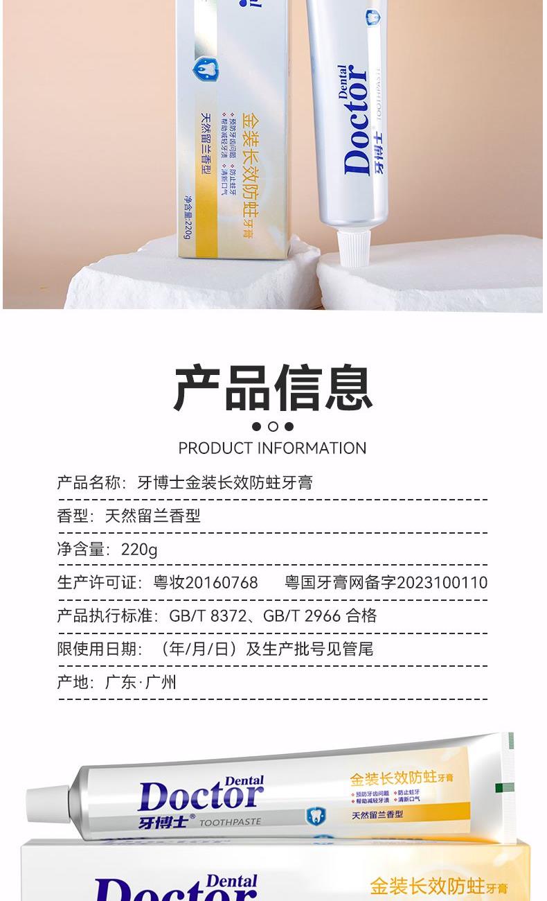 牙博士金装长效防蛀牙膏家庭装220g