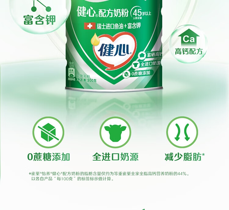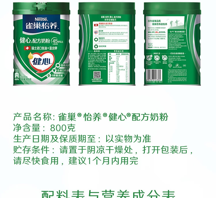 雀巢(Nestle)怡养健心鱼油中老年奶粉高钙800g罐装