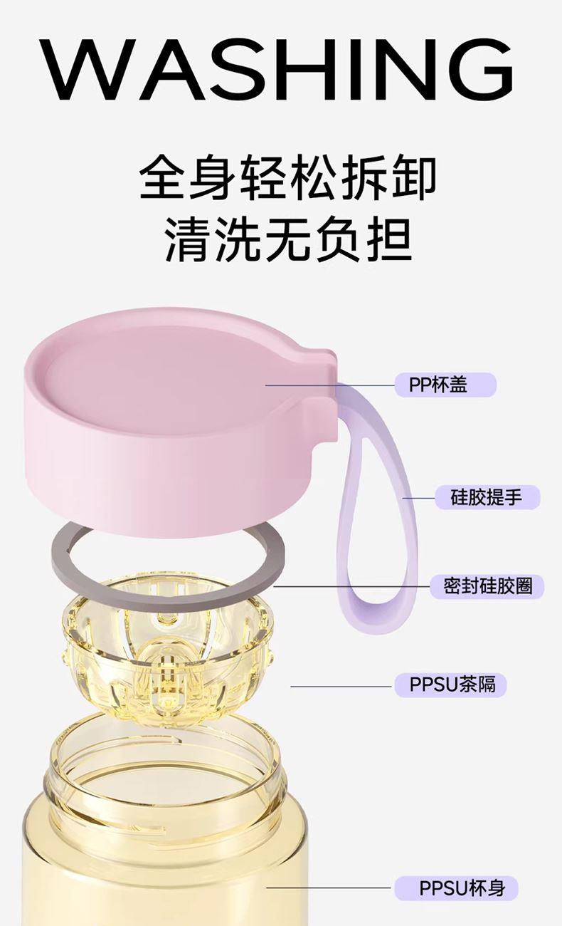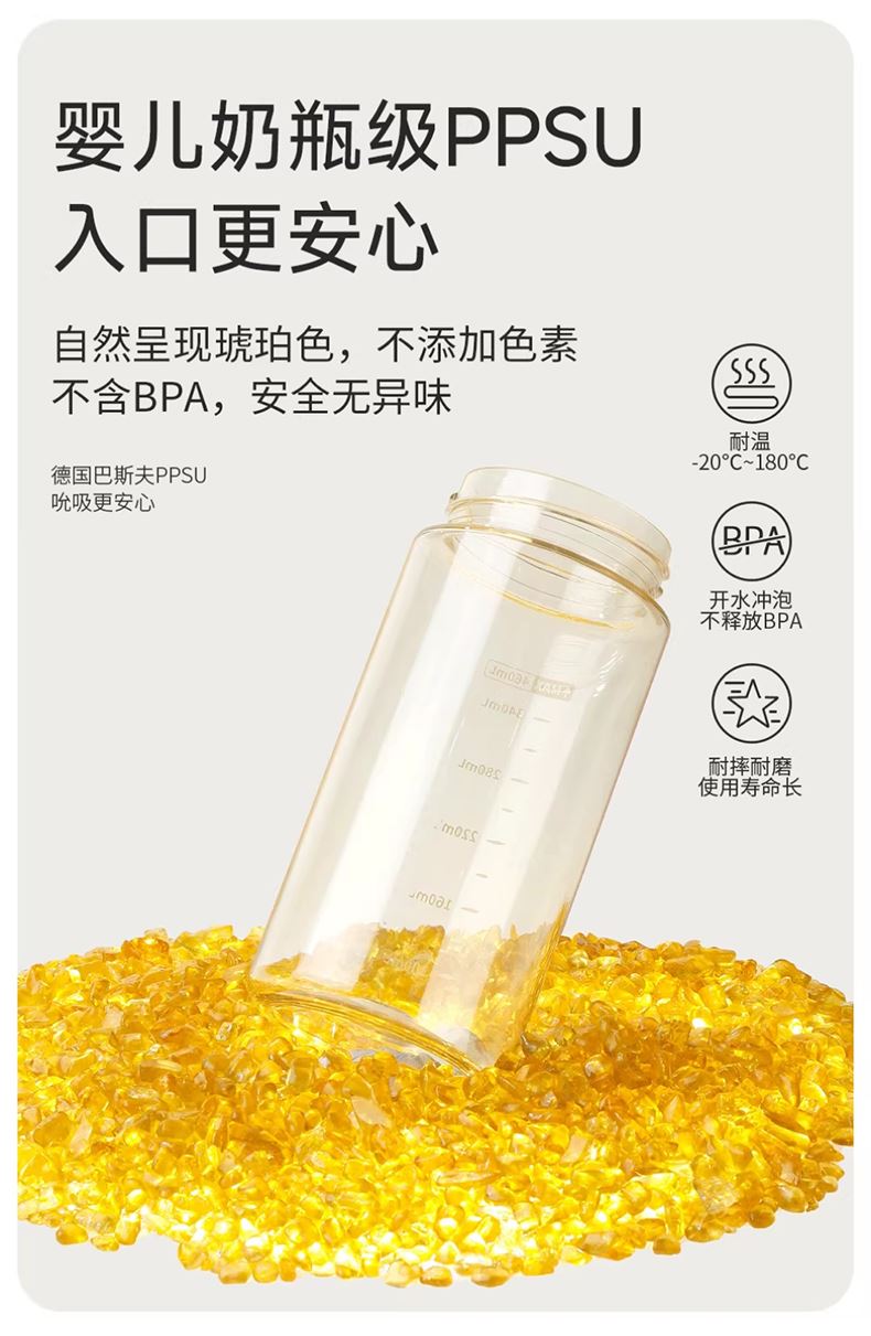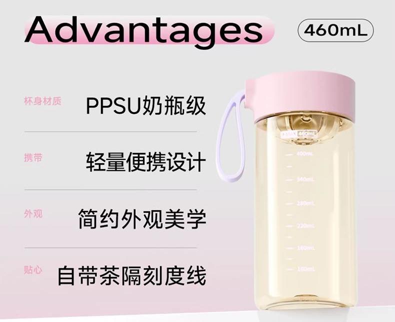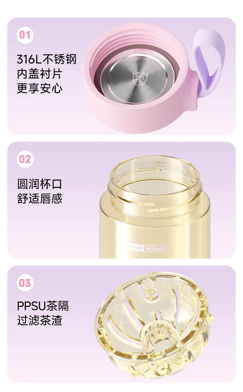 · PPSU材质,安心守护, · 316L不锈钢内盖衬片。 · 圆润杯口,舒适唇感。