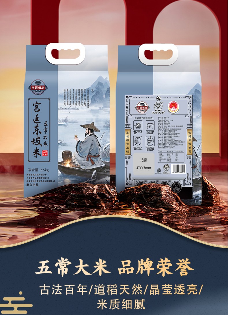• 宫廷传奇东坡米五常大米核心产区原粮稻花香2号十二月2.5KG