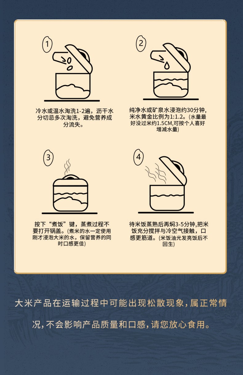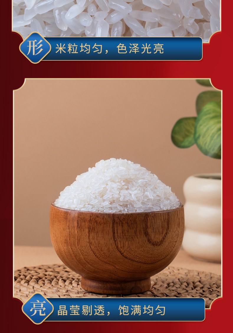 规格:2.5公斤 产品标准代号:GB/T 19266 质量等级:优质一等 米种:原粮稻花香2号 保质期:12个月 尺寸:240*265*73mm 稻花香米的包装简约大气,品质可谓上乘,米粒均匀,色泽光亮,醇厚绵长,芳香四溢。五常稻花香大米成饭食味清淡略甜,棉软略粘,芳香爽口,饭粒表面油光艳丽,剩饭不回生,是百姓餐桌上的首xuan,是日常生活中做米饭的佳品。 口感:软嫩香甜,嚼劲十足,米香浓郁,冷后不硬。 外观:细长饱满,晶莹油亮,头部带鹰嘴勾,腹白明显
