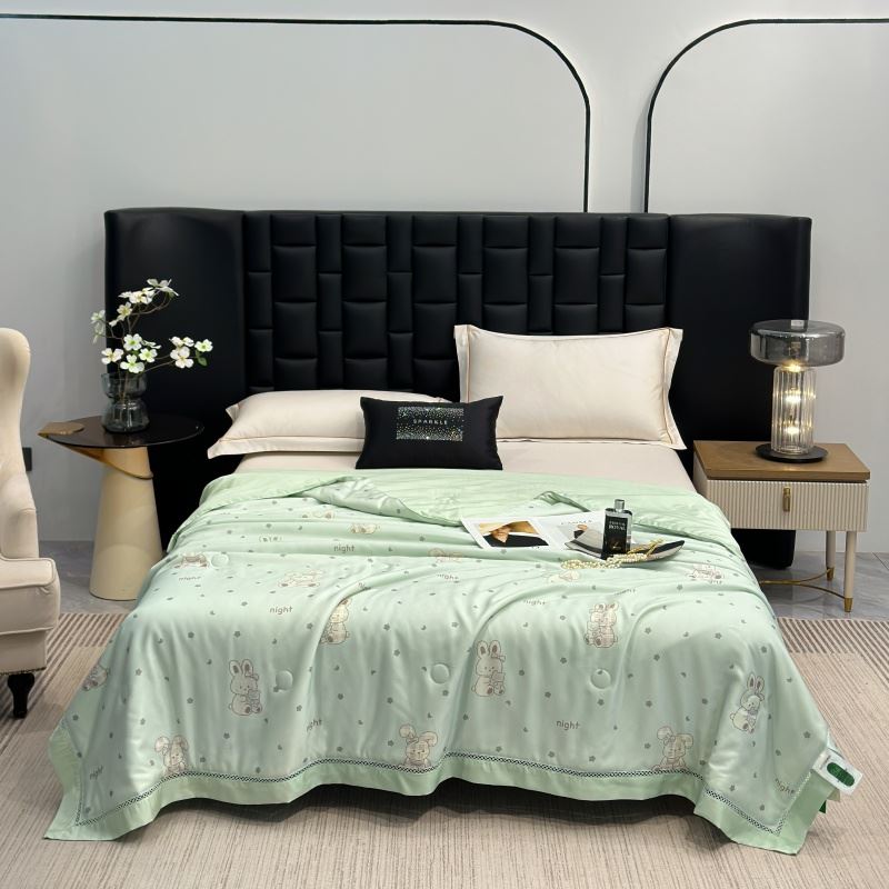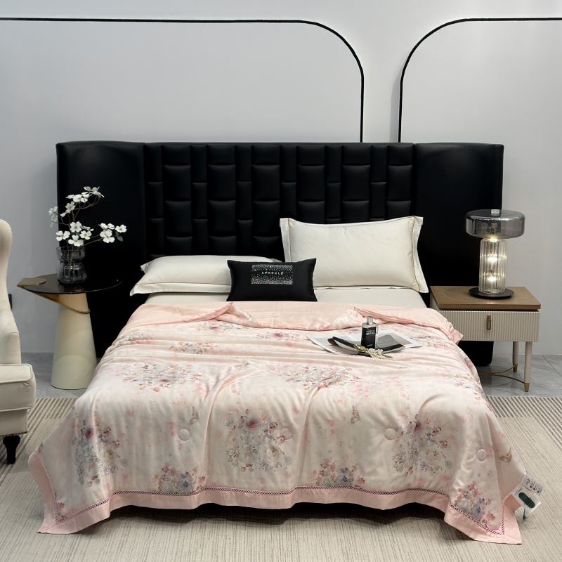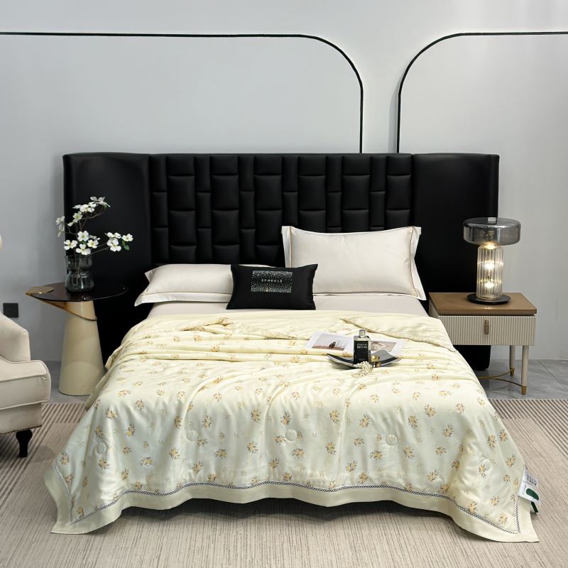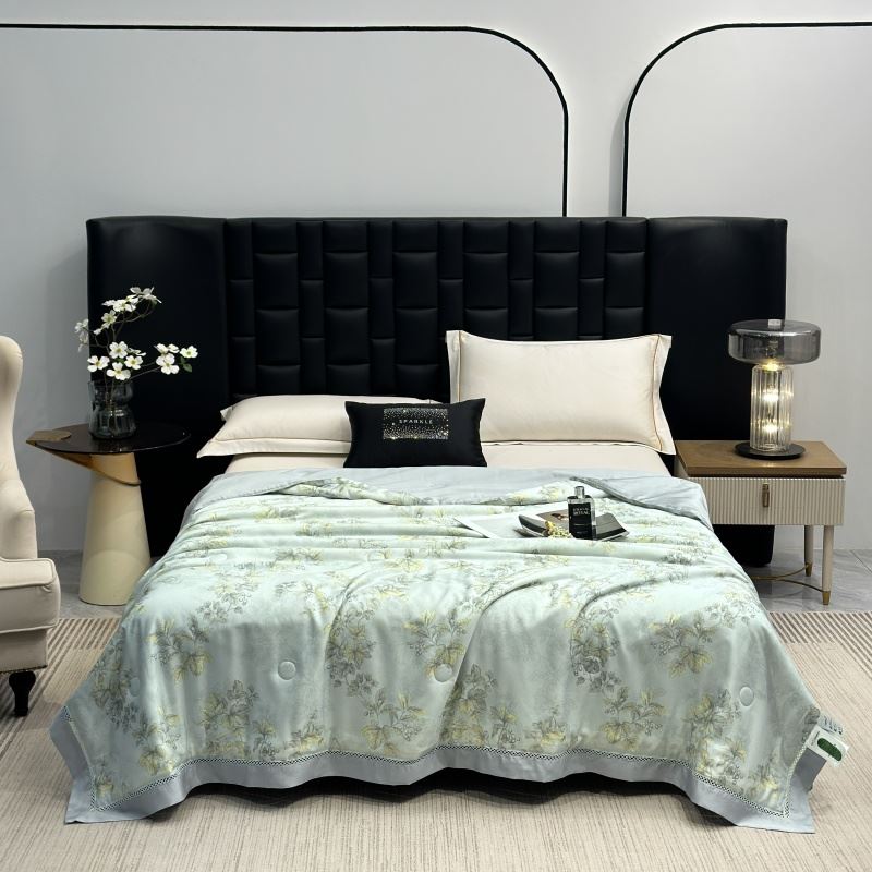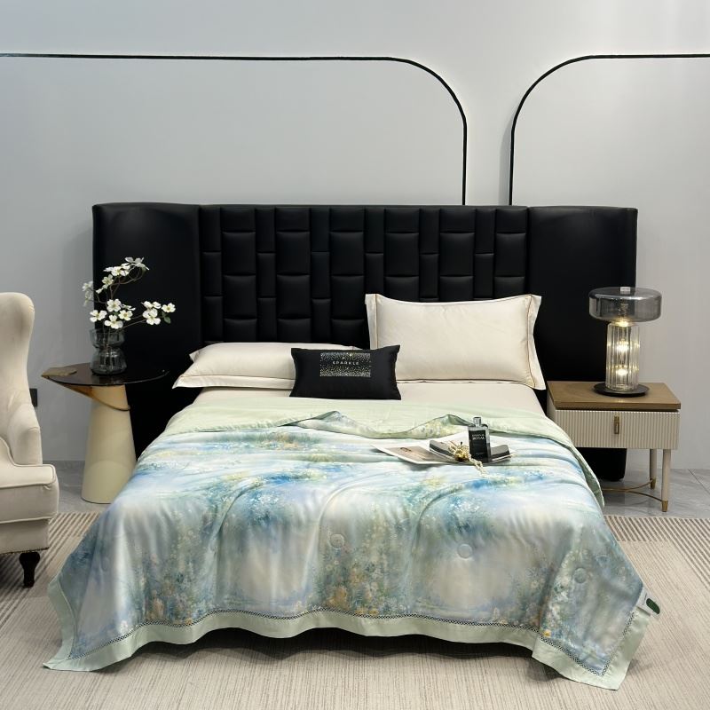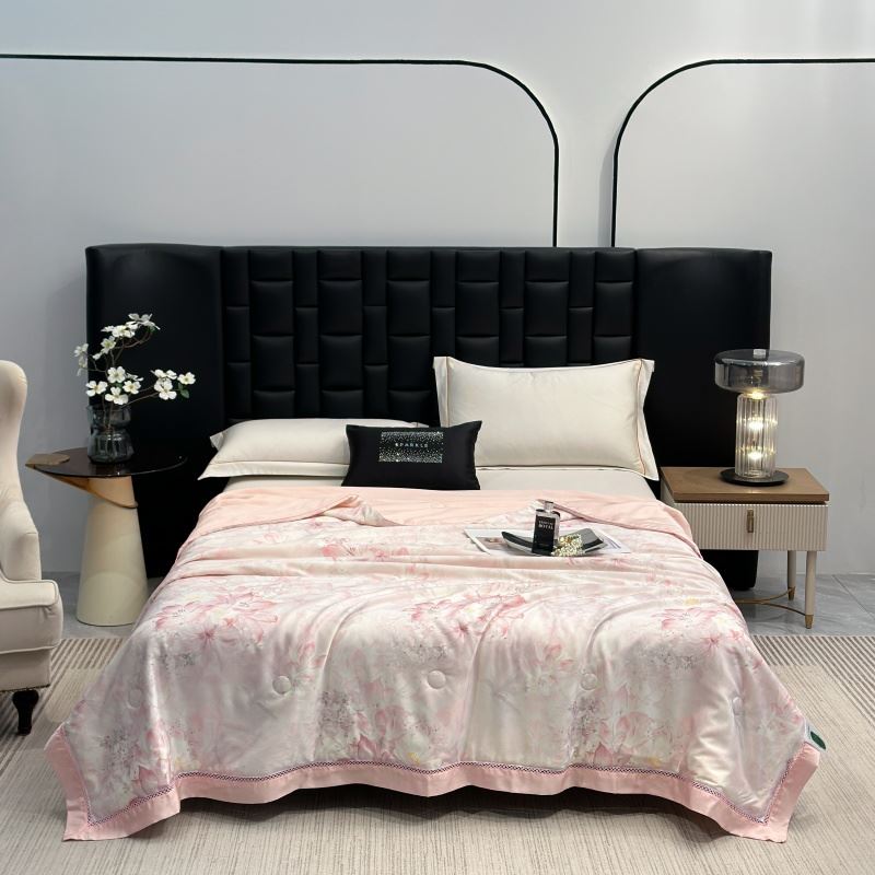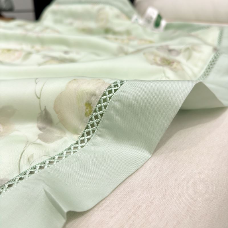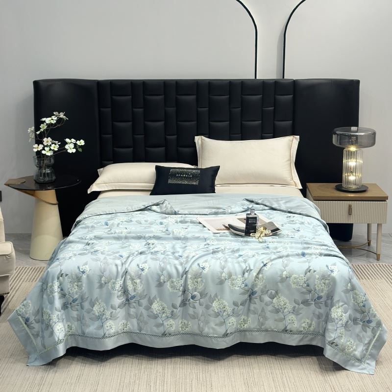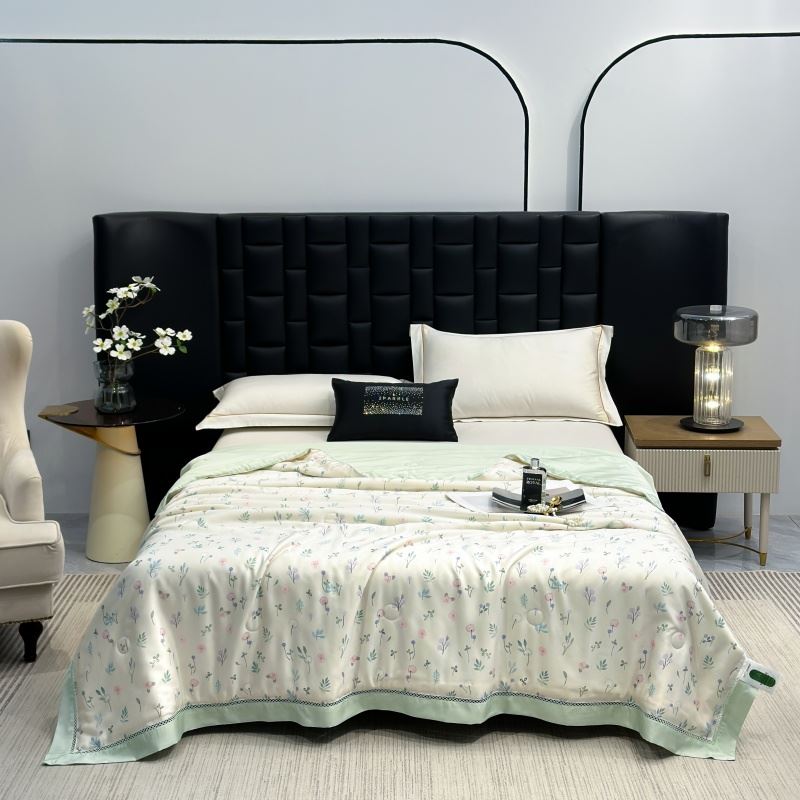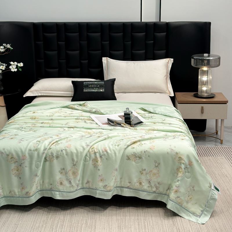 超细旦莱赛尔纤维,面料光泽自然 手感细腻 透气滑爽 温而不燥,你值得拥有,数码印花工艺,不掉色,久用如新。 采用宽边镂空花边工艺,简约时尚。 【面料】莱赛尔纤维 【规格】150*200 cm