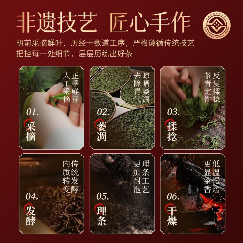 4.古法技艺 匠心制茶 传统6大高标准制茶-1采 2萎 3揉 4酵 5理 6燥