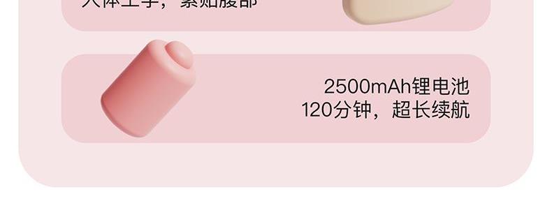 续航时间 1档发热&1档按摩360分钟/12次;3档发热&3档按摩210分钟/7次
