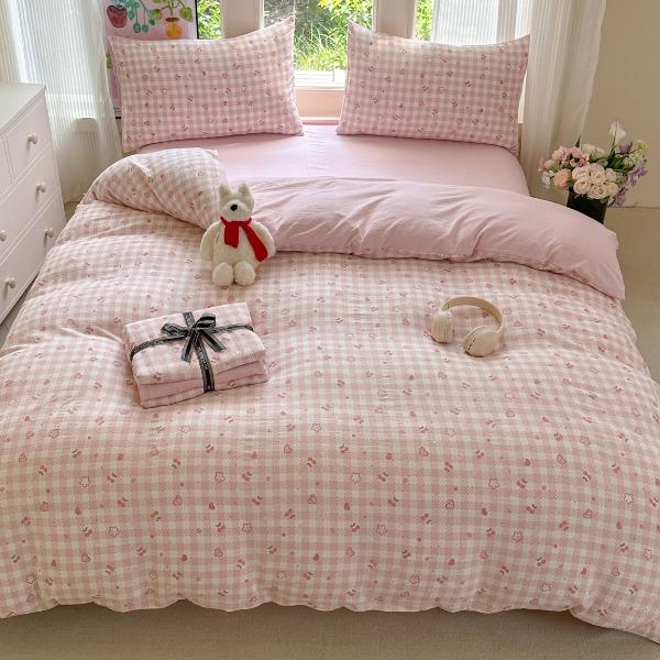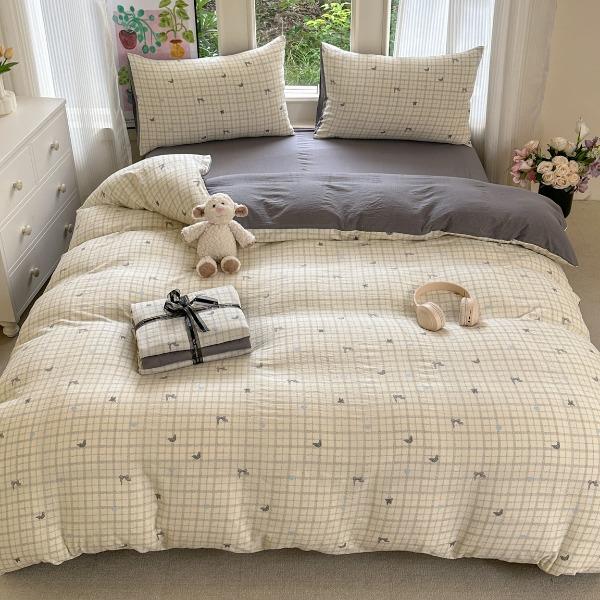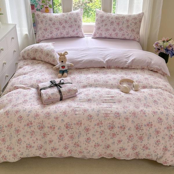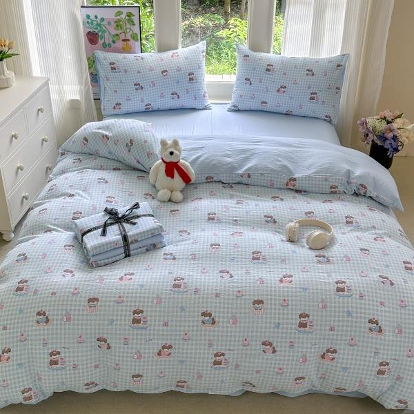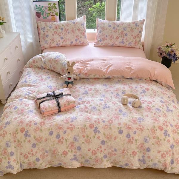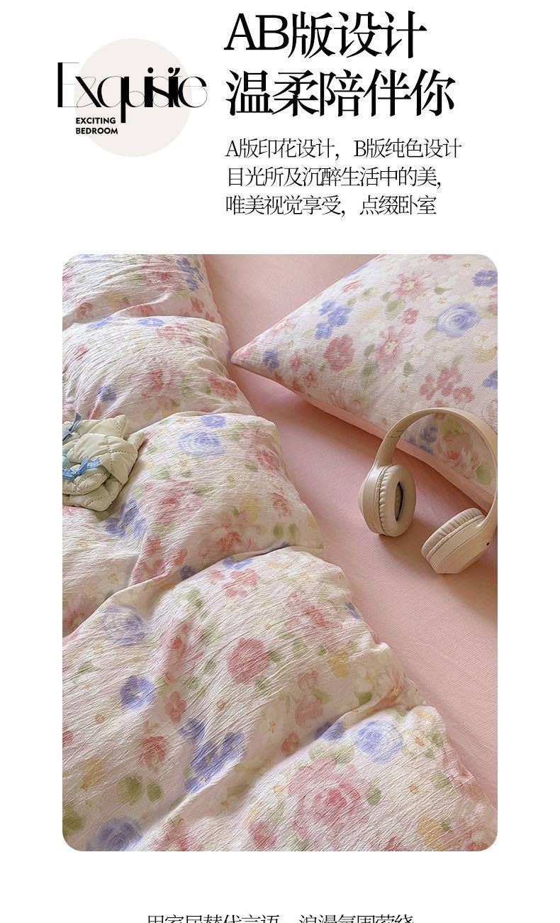 花花公子-家纺-水洗棉有氧双层纱印花云感木棉皱皱纱四件套
