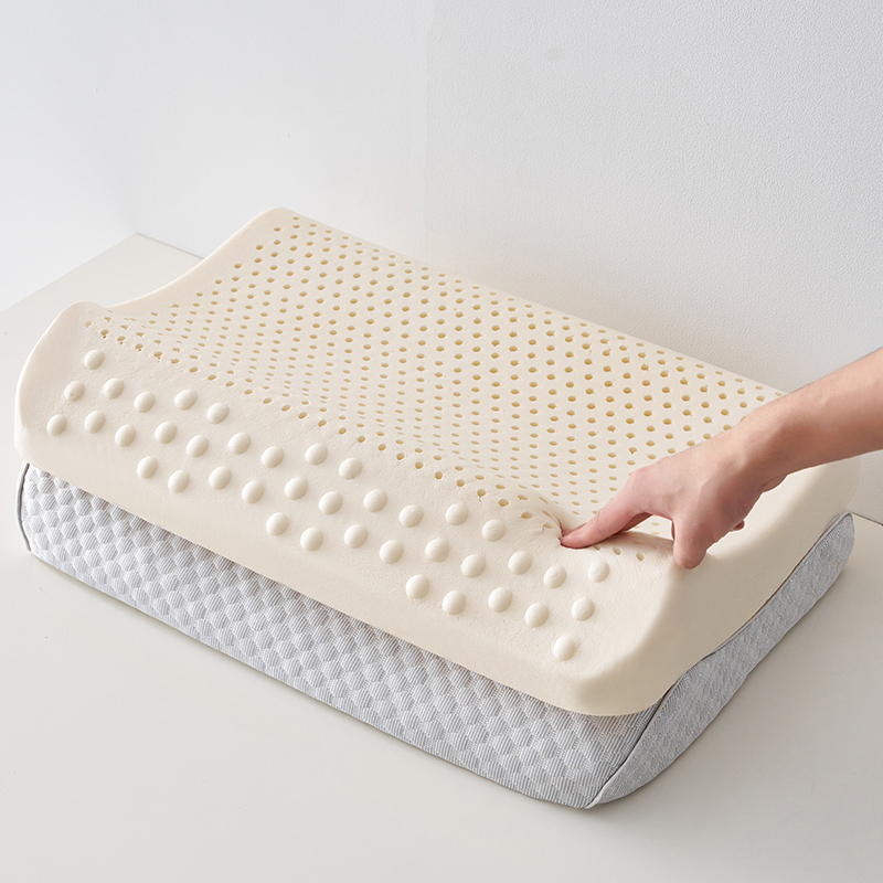 规格:40*60*8/10cm *1 面料:针织棉 填充物:天然乳胶 克重:1000g 产品包装:精美礼盒 产品特点: 1.天然乳胶是一种从橡胶树上提取的天然材料,具有环保、健康、舒适等特点。 2.乳胶枕具有舒适、支撑力好等特点。
