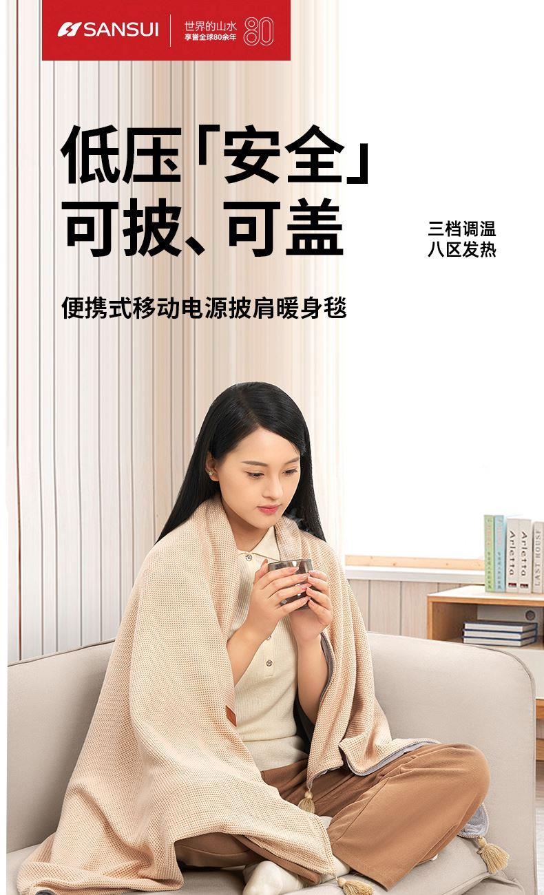 SANSUI山水电热保暖披肩暖身毯(披肩+充电宝)