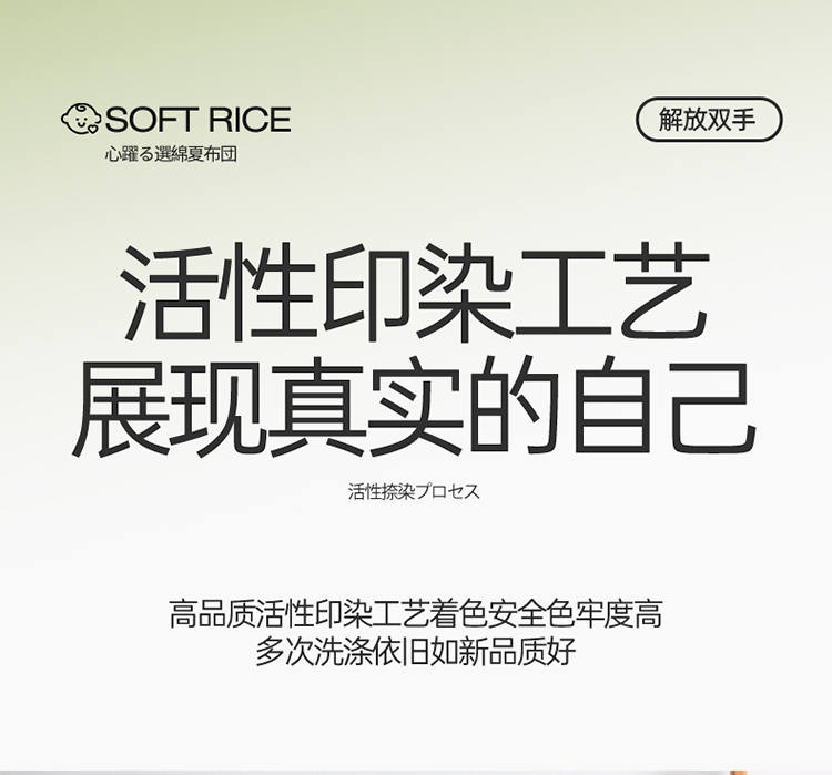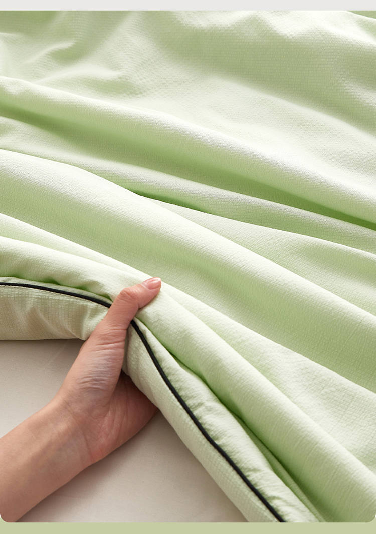 规 格:150*200cm 花 型:抹茶绿/象牙白/迷雾紫/太湖蓝/钛金灰/仙草粉 面 料:聚酯纤维 填充物:整张羽丝棉(聚酯纤维) 工 艺:定位绗缝 A类级别夏被,无甲醛无荧光无芳香胺,泡泡棉纱质面料柔软光滑,吸湿透气,不易变形,敏感肌肤适用;泡泡棉的透气性能十分良好且拥有吸湿快干的优点,优质整张羽丝棉填充,蓬松柔软;无惧机洗水洗,久洗如新,解放双手;细节满分,手工直角包边 不易开线 更加耐用。