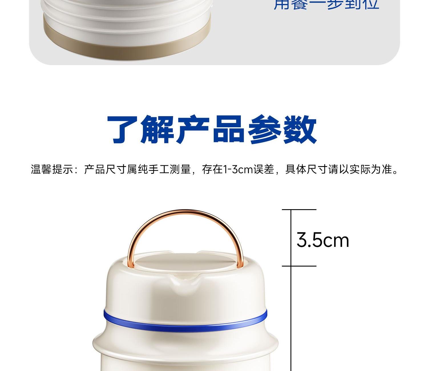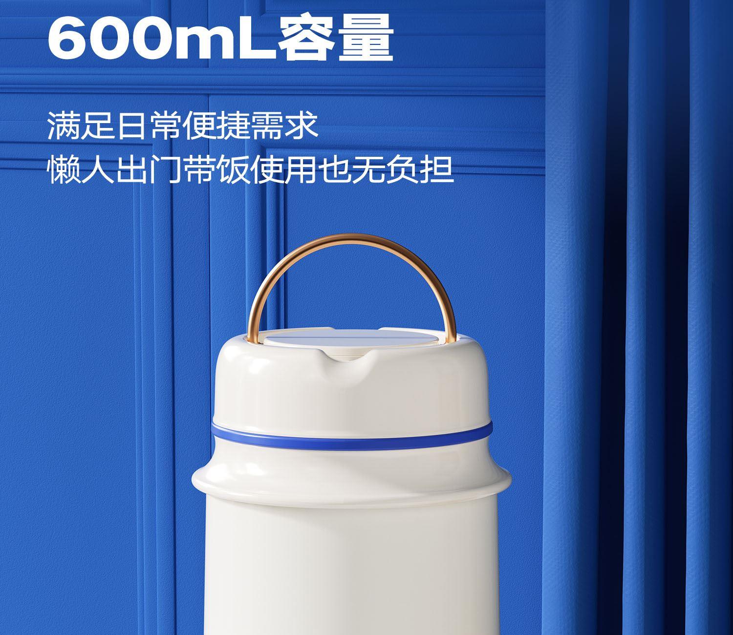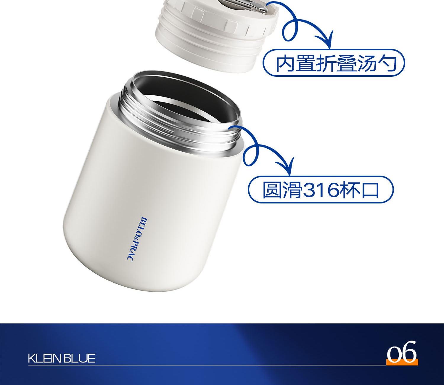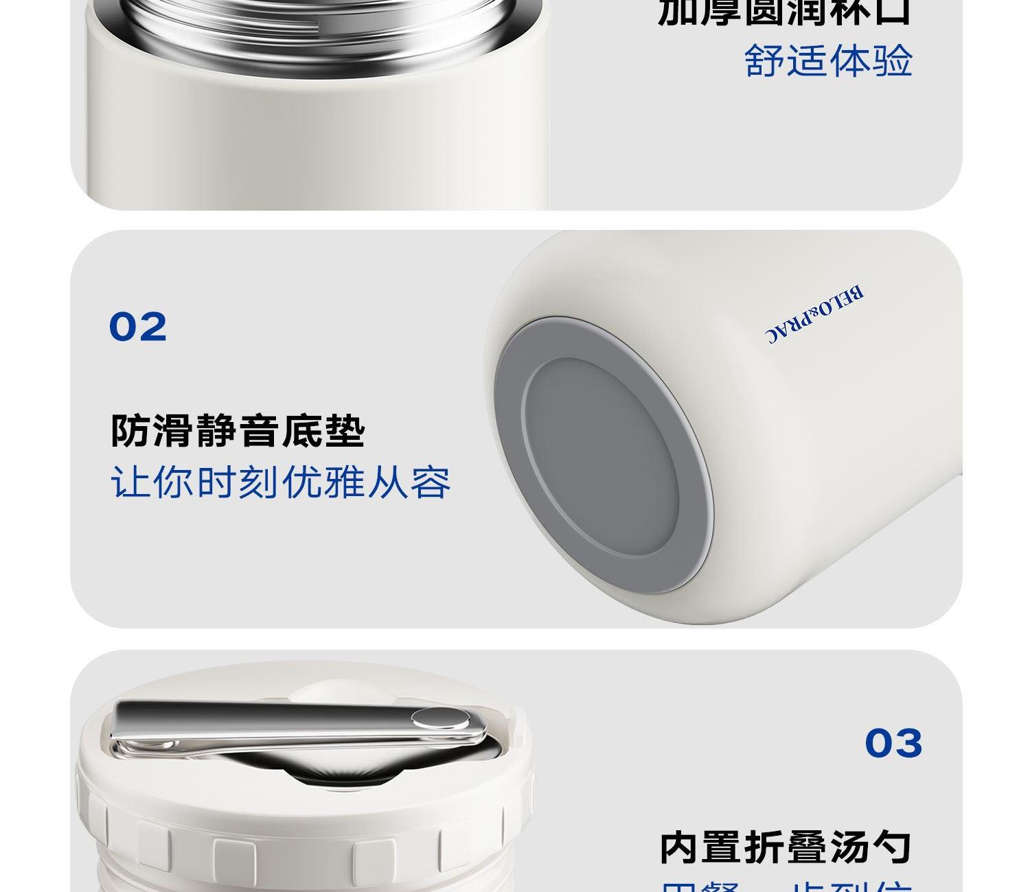 无火焖出美食,汤、粥、羹、蛋都能焖 316不锈钢内胆,耐腐蚀,无异味 真空长效保温保冷,酷暑严寒有它就足够 内置折叠汤勺,杯盖可当碗用,用餐一步到位 提手设计,出行更便捷,硅胶底垫,静音防滑 产品容量:600ml 产品材质:316不锈钢 彩盒尺寸:11.4*11.4*17cm 外箱尺寸:71*59*18.5cm 执行标准:GB4806.9-2016