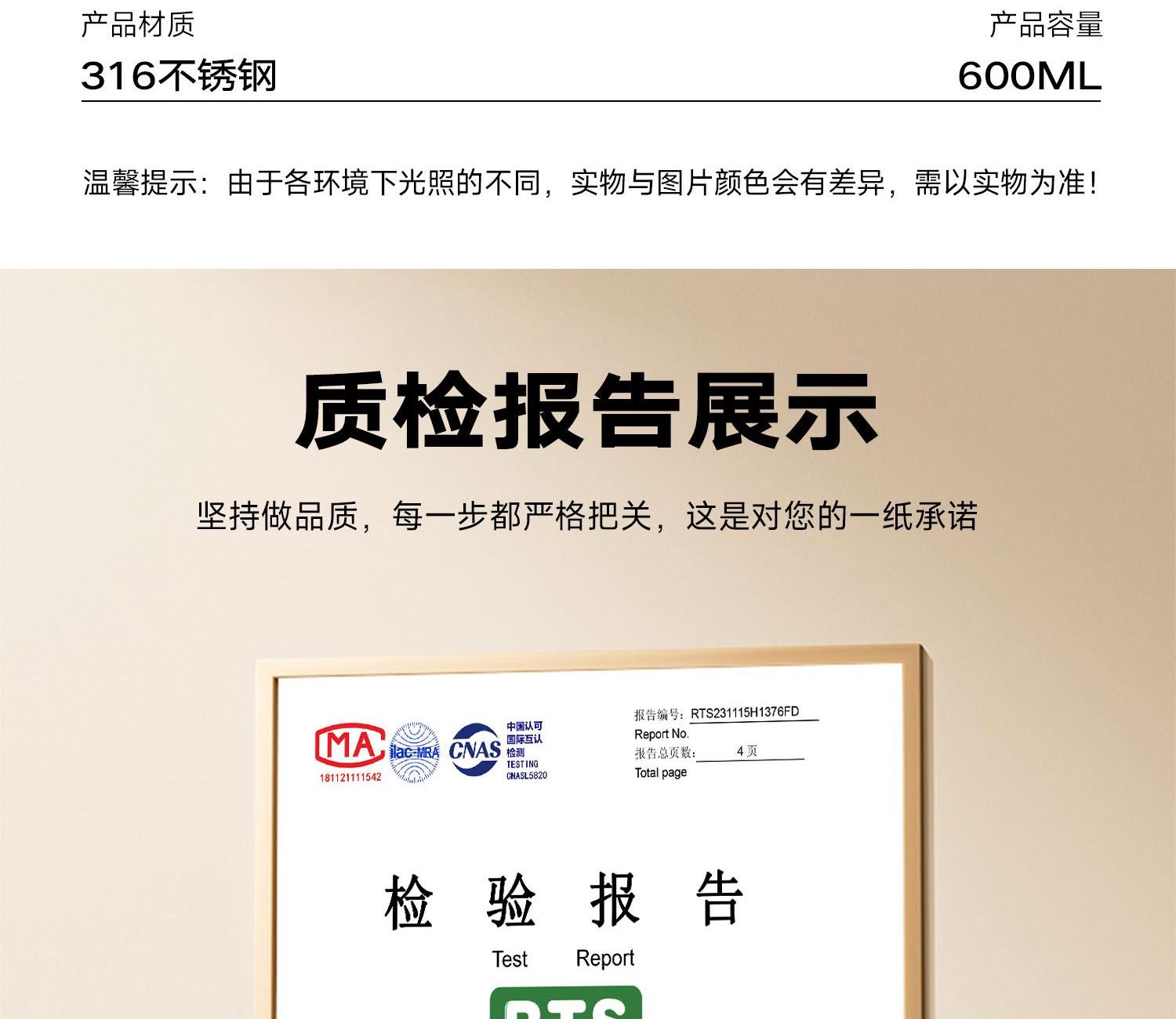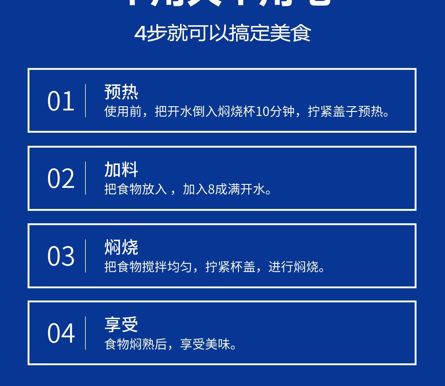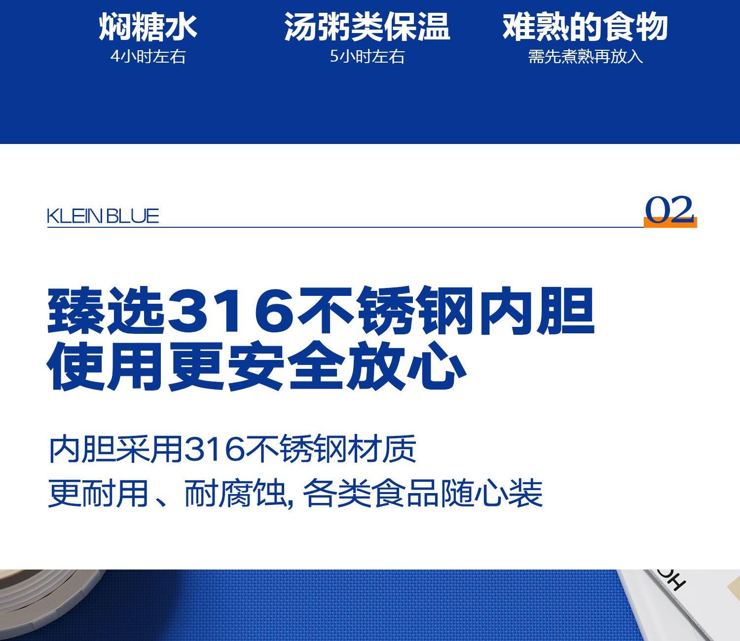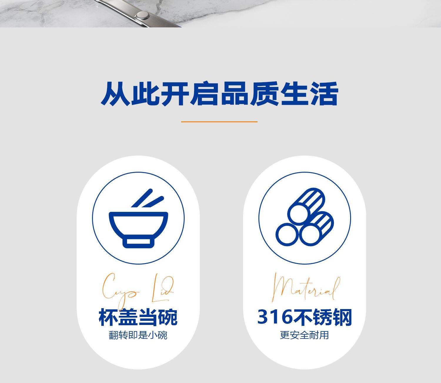 无火焖出美食,汤、粥、羹、蛋都能焖 316不锈钢内胆,耐腐蚀,无异味 真空长效保温保冷,酷暑严寒有它就足够 内置折叠汤勺,杯盖可当碗用,用餐一步到位 提手设计,出行更便捷,硅胶底垫,静音防滑 产品容量:600ml 产品材质:316不锈钢 彩盒尺寸:11.4*11.4*17cm 外箱尺寸:71*59*18.5cm 执行标准:GB4806.9-2016