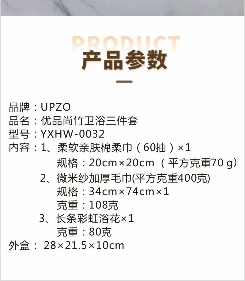 型号:YXHW-0032 产品内容: 1、严选好物系列亲肤棉柔巾×1 (60抽) 20cm×20cm 平方克重70克 2、严选好物系列微米纱加厚毛巾 ×1 克重100克 34cm×74cm 3、严选好物系列长条彩虹浴花 ×1 80克 外盒: 28×21.5×10cm 长条彩虹浴花 精选新料 手工制作 洗脸巾加厚 平方克重70 60抽 微米加厚干发巾 毛巾克重100克 厚度决定吸水性 精制包边
