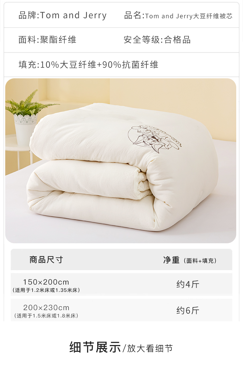 TomandJerry大豆纤维被4斤加厚保暖被芯单人学生