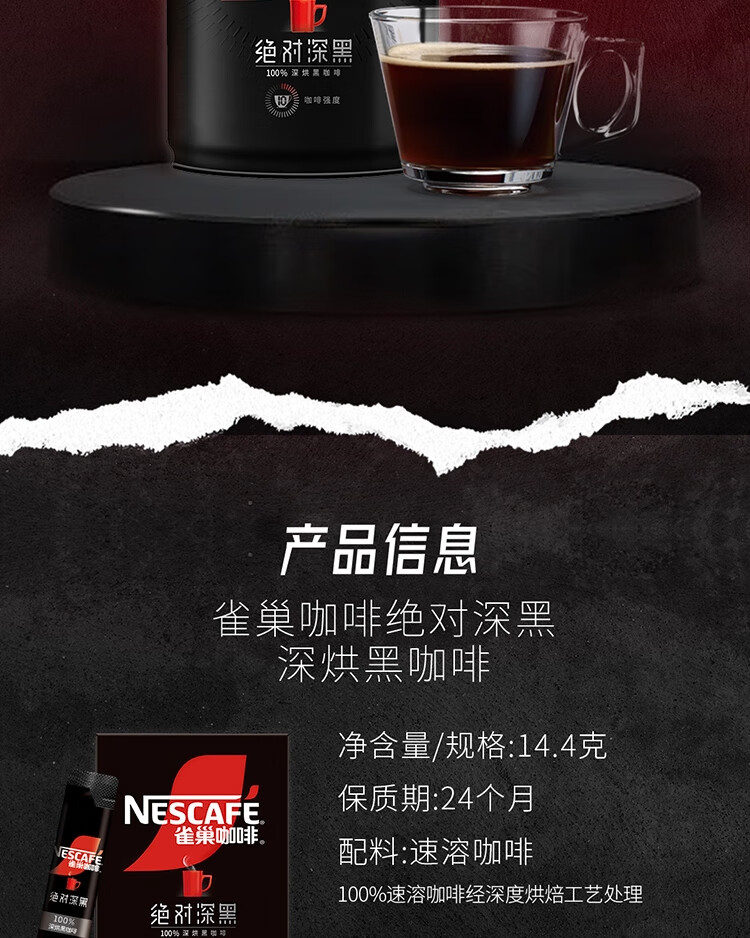 雀巢深黑美式速溶黑咖啡0糖0脂30条*1.8克盒装