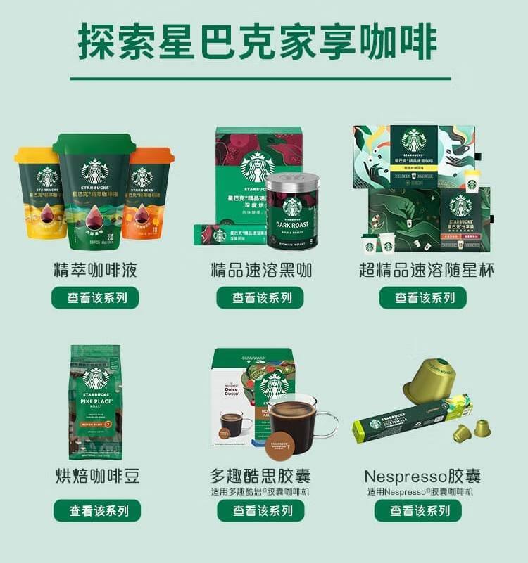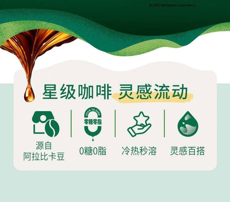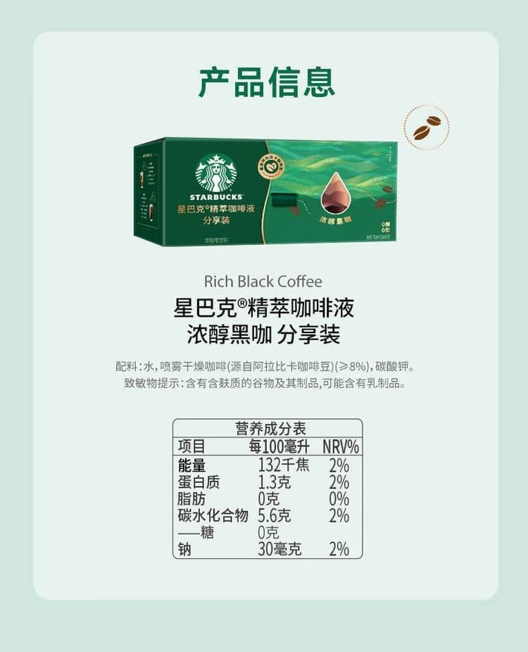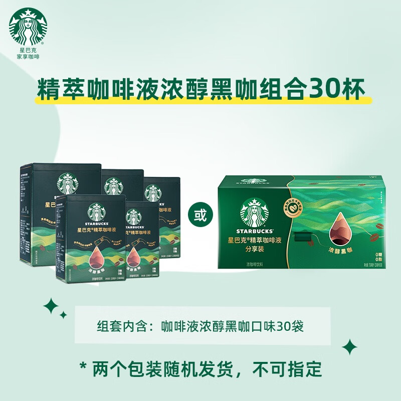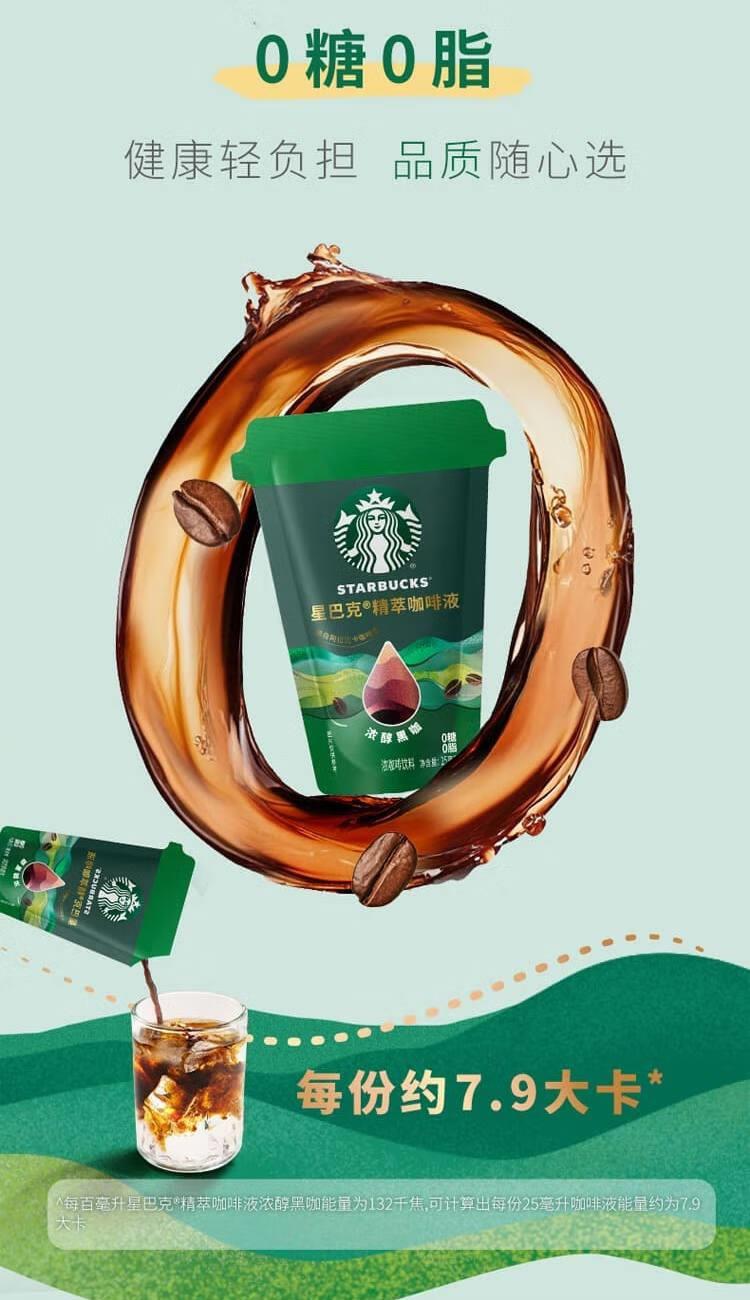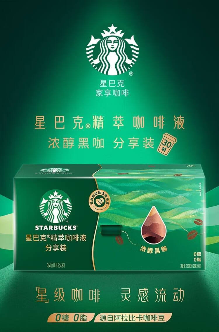 星巴克0糖0脂即享黑咖啡精萃咖啡液浓醇黑咖25ml*30杯