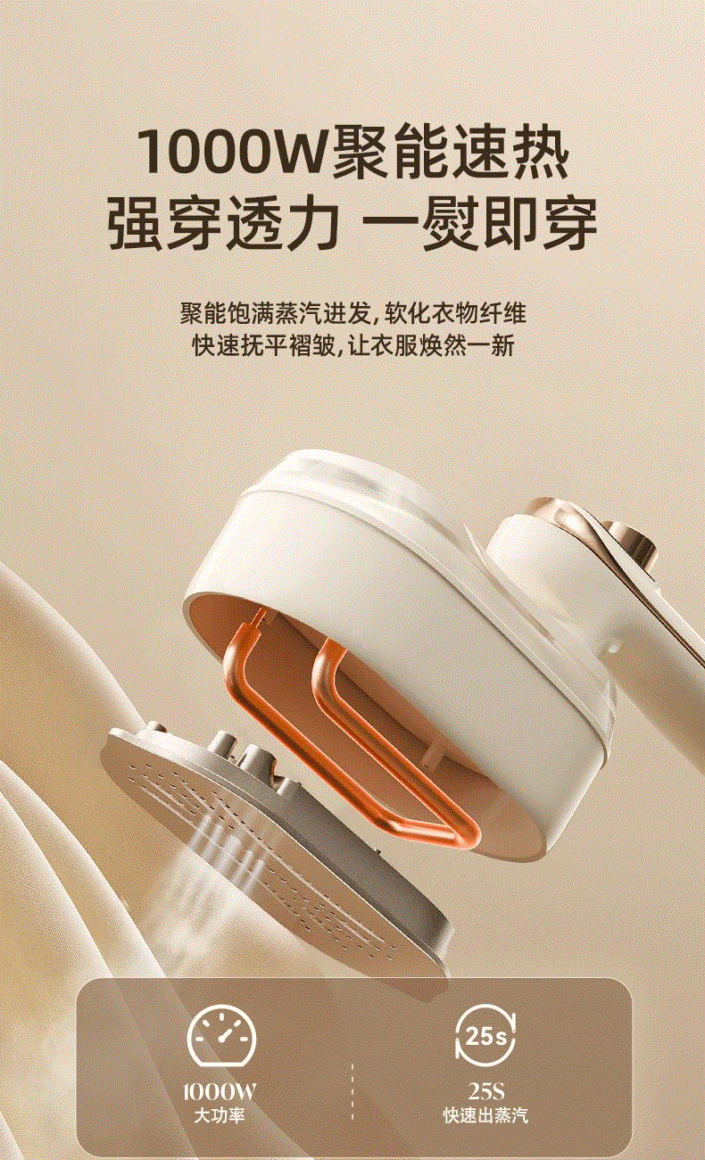 一键切换随心所熨 即熨即穿 平烫挂烫自由选 机身小 蒸汽大 熨烫功力佳