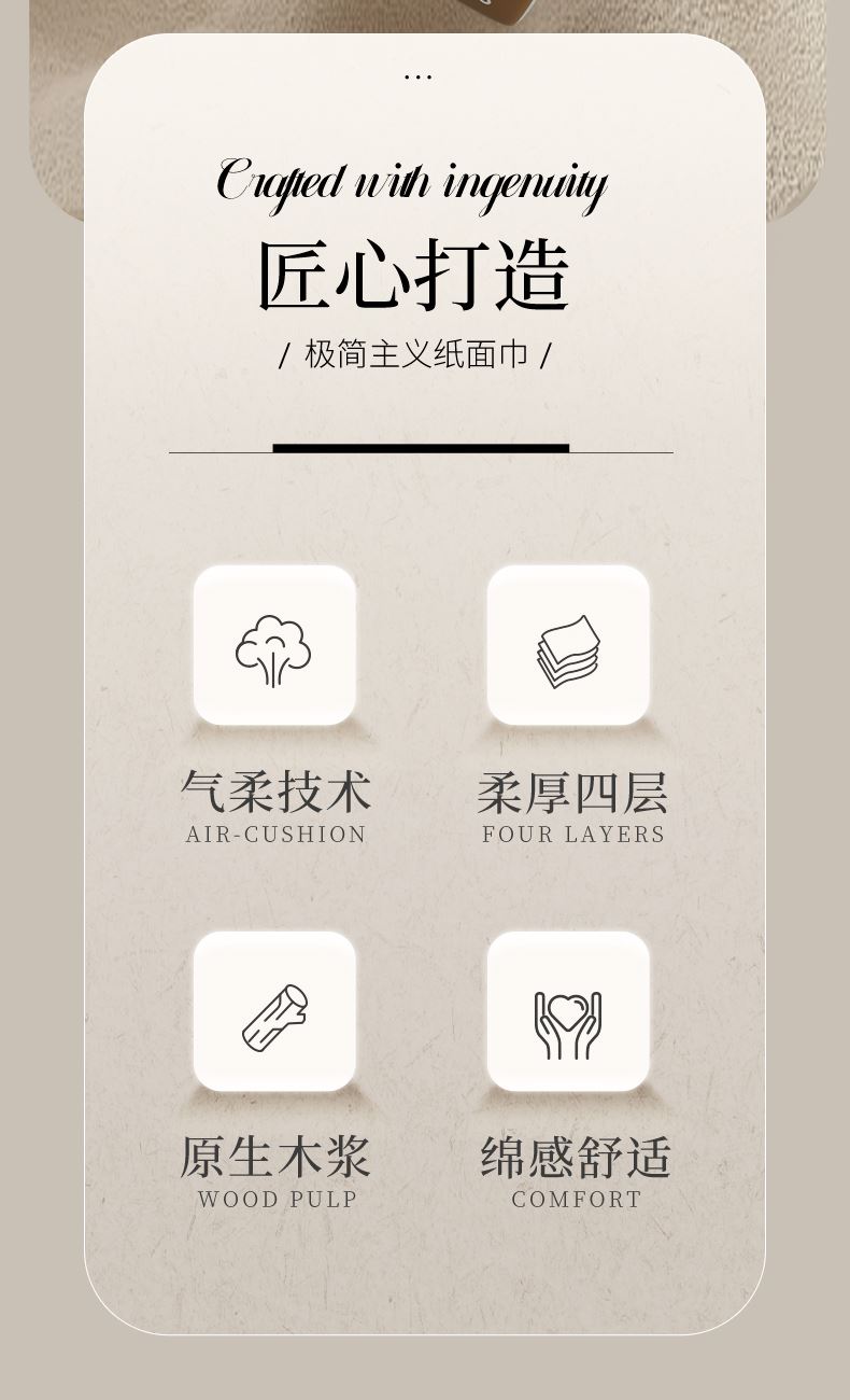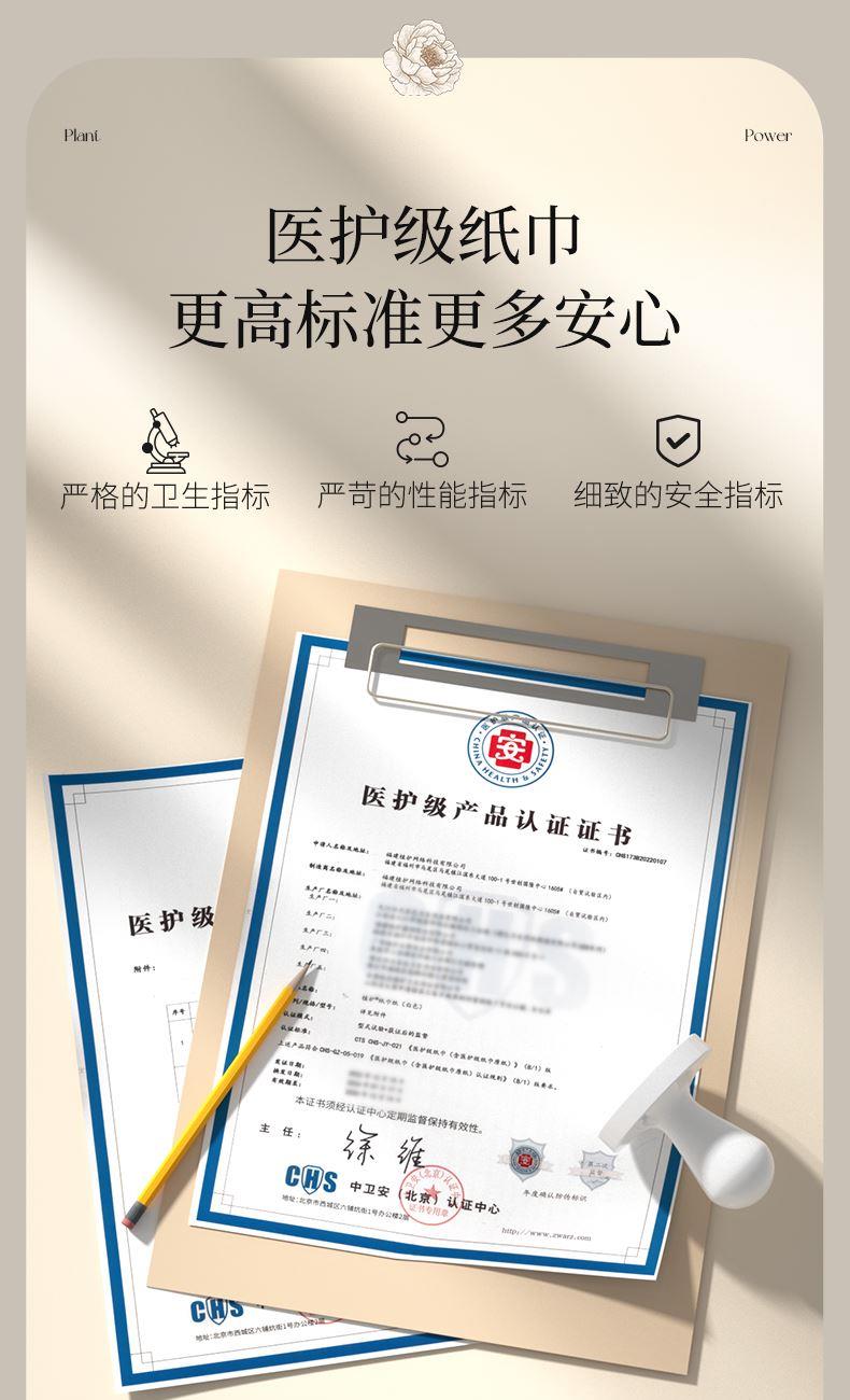 销售规格:140*175mm/4层 90抽 3包/提; 香型:无香 主要原料:原生木浆 保质期:3年 1、精选原生木浆,柔韧性更好 2、优等品等级,高标准品质 3、纸质绵柔细腻,擦拭不留屑,亲肤零刺激 4、湿水性好,强韧吸附水渍不易破 5、四层压合紧密,纤维排列细致,拉扯不易破 6、原生木浆,天然安心 7、医护级认证,品质有保障。