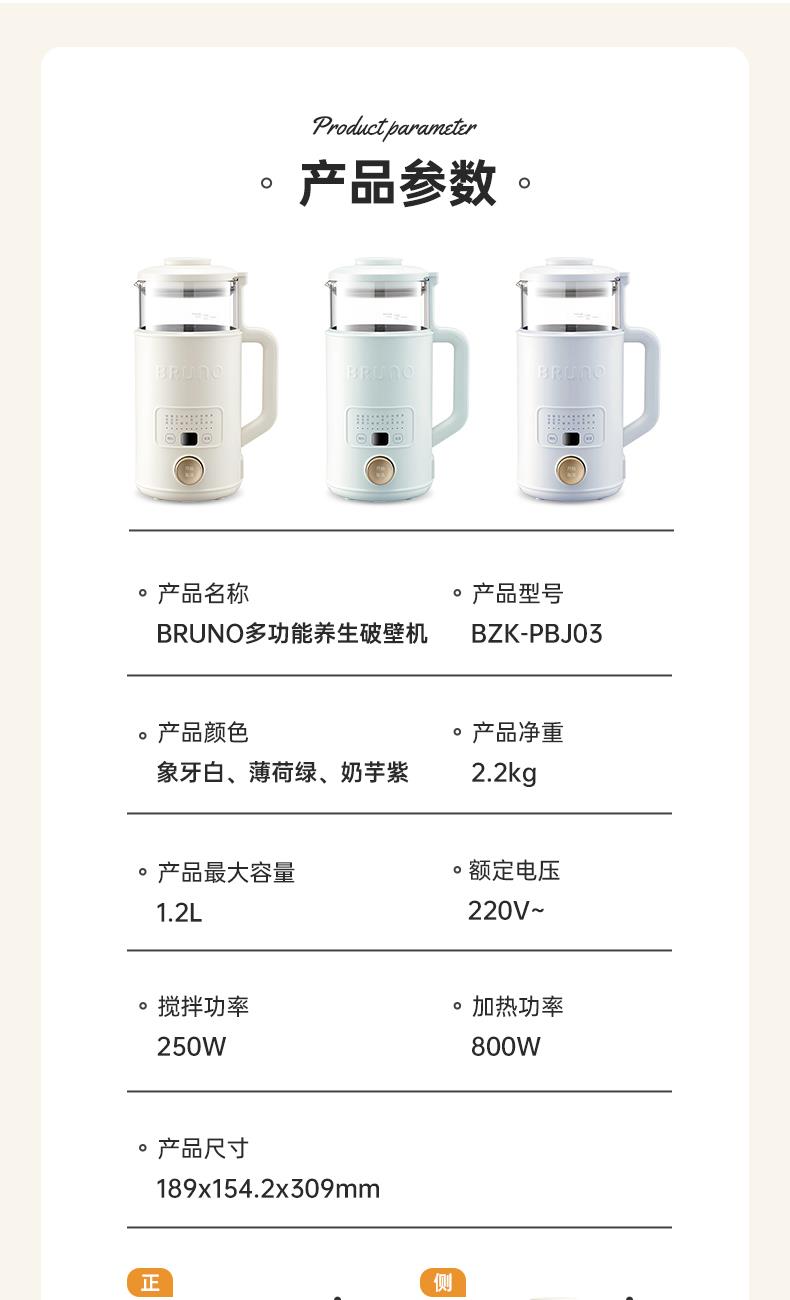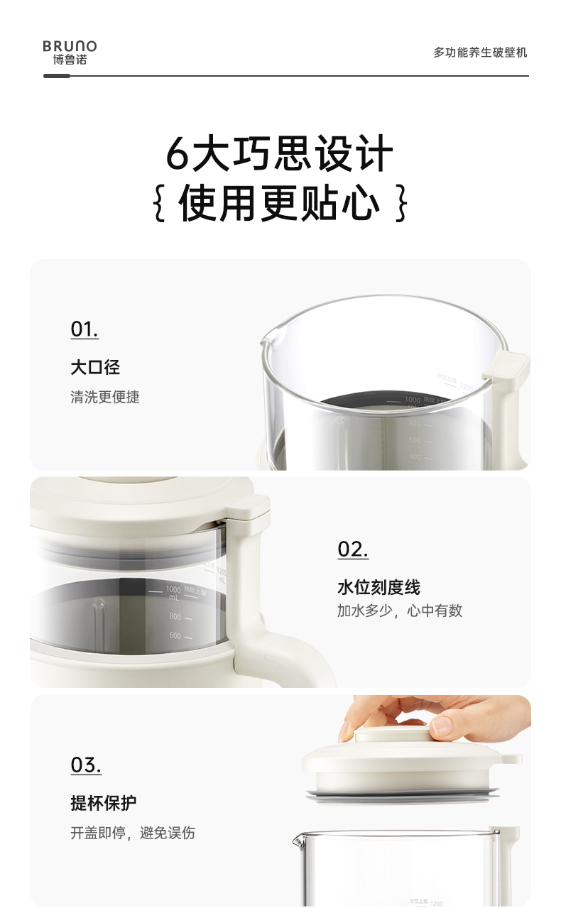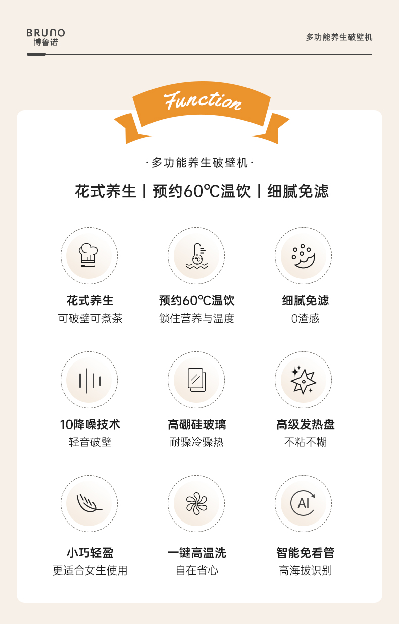 • BRUNO静音多功能破壁机茶漏款BZK-PBJ03-XP01