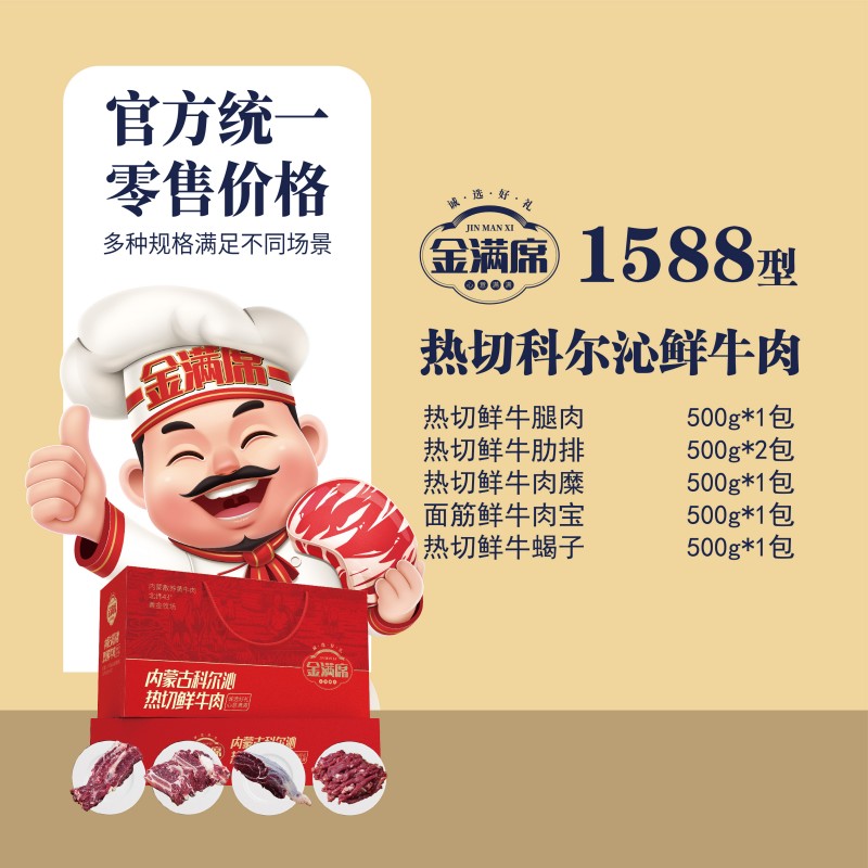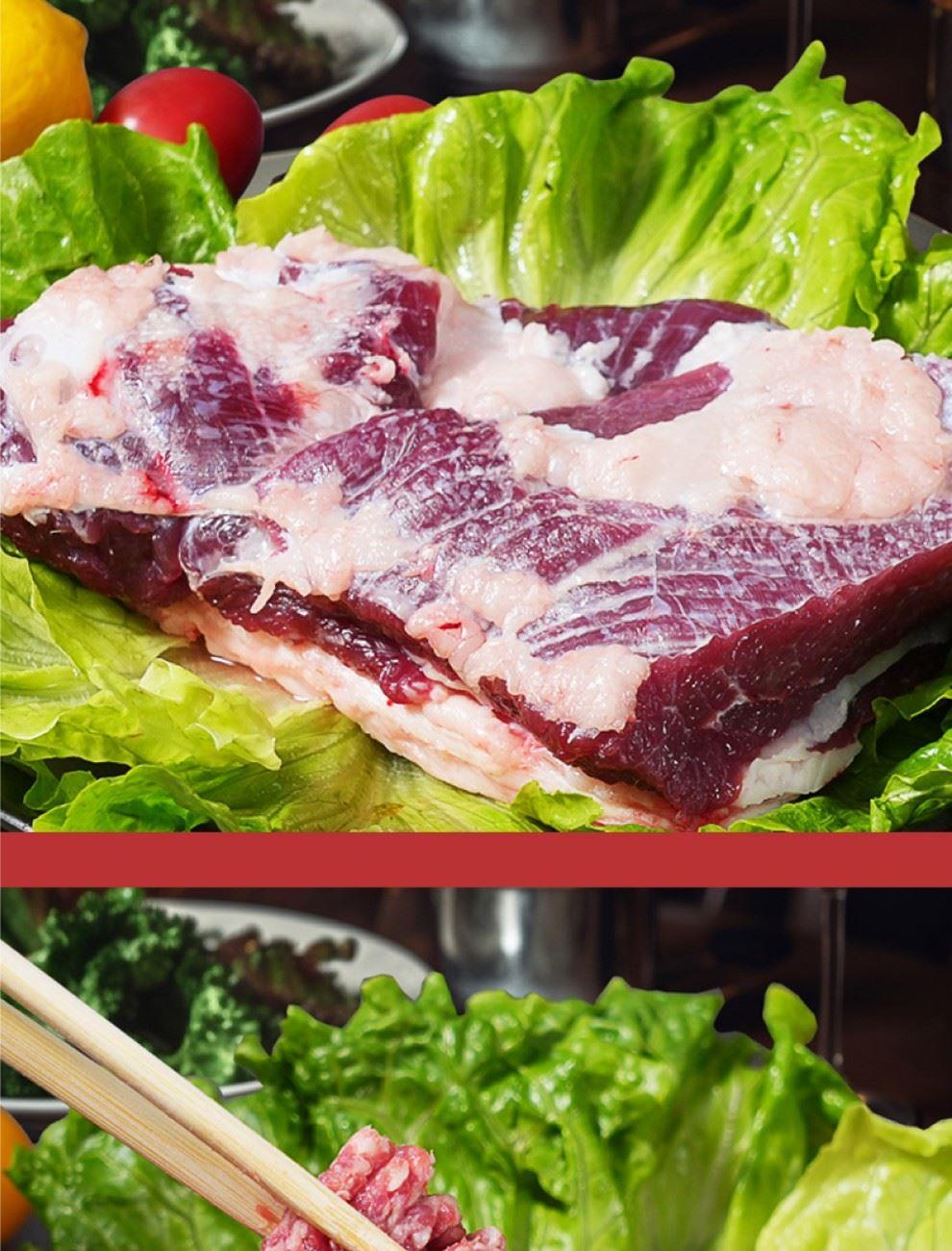 1.热切鲜牛腿肉500g 2.热切鲜牛肋排1000g 3.热切鲜牛肉糜500g 4.面筋鲜牛肉宝500g 5.热切鲜牛蝎子500g