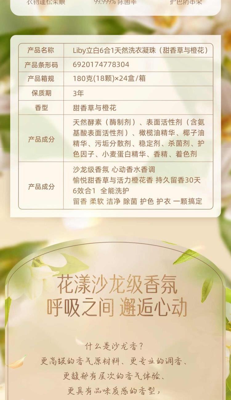 立白香氛净护6合1天然洗衣凝珠180克(18颗)