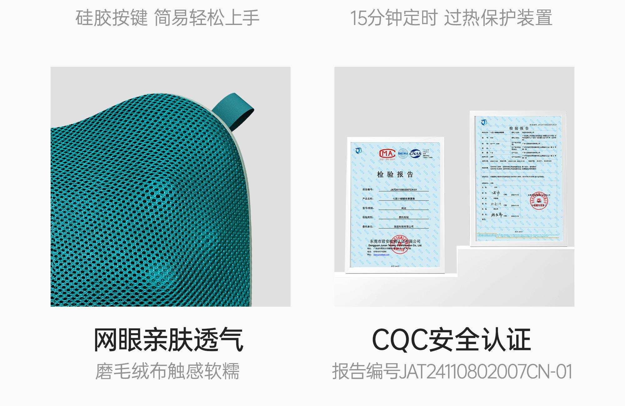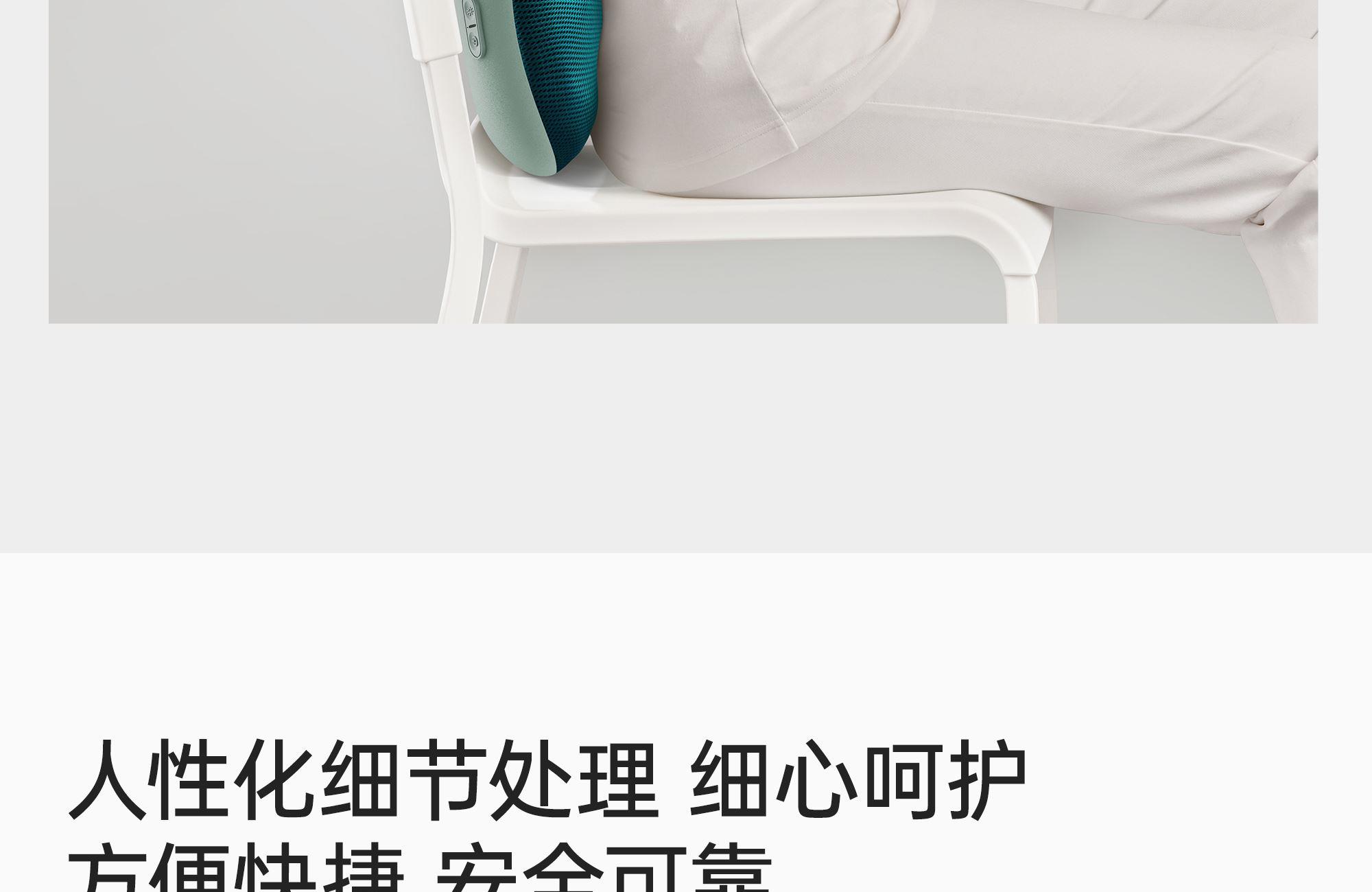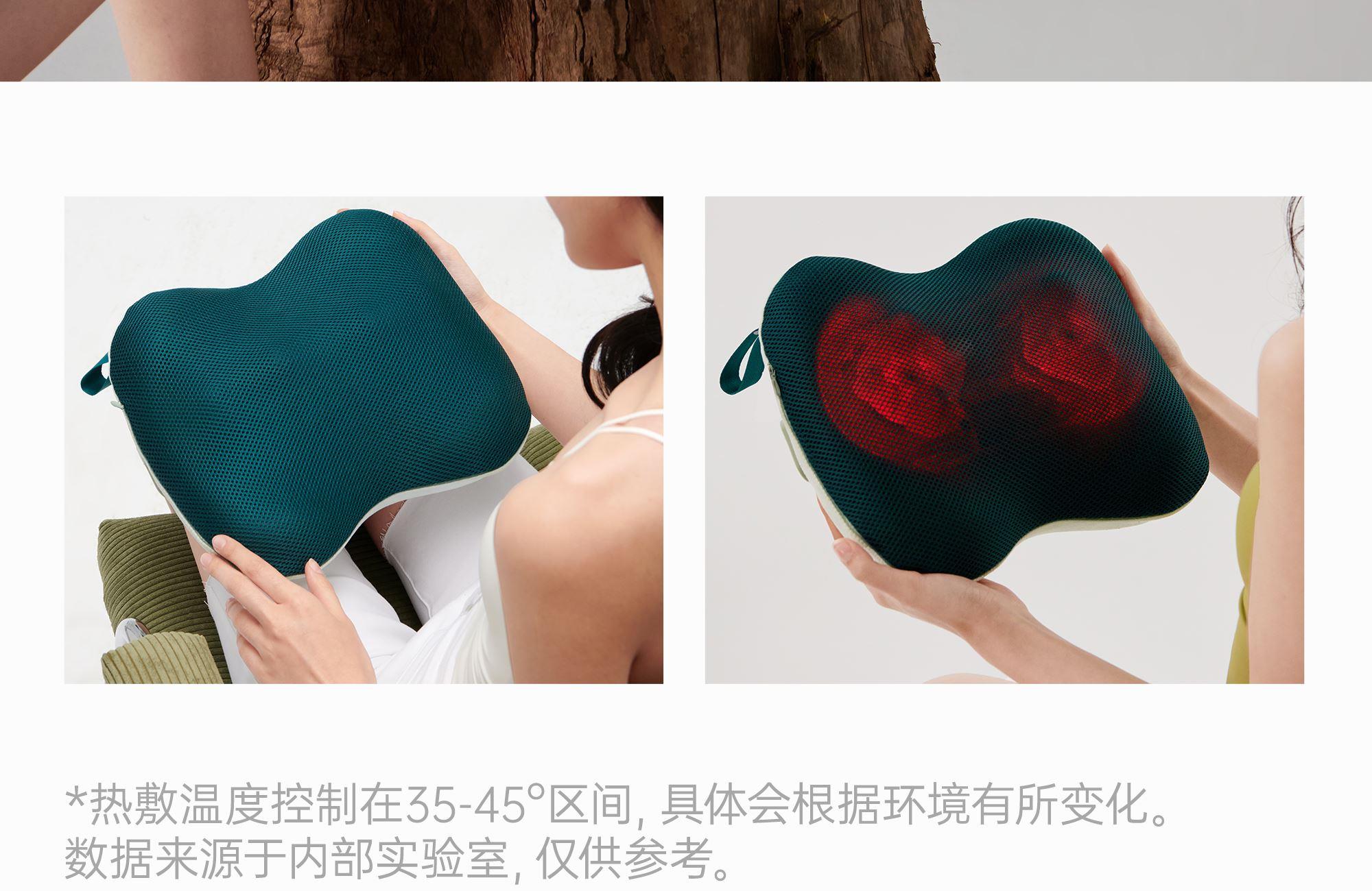 产品规格:310mm*250mm*120mm 产品净重:1.35kg 外箱毛重:2.1kg 外箱尺寸:335*262*119mm 包装方式:彩盒 产品颜色:苏格兰绿/向日葵黄 1、仿指腹按捏,体感舒适 2、体积小,便携利收纳 3、仿人手推揉技法 4、双人工曲线设计,贴合度更高 5、恒温热敷,帮助促进血液循环 6、Type-c充电口,无线使用,居家、办公、车载、出行多场景使用 7.噪音小,续航时间长