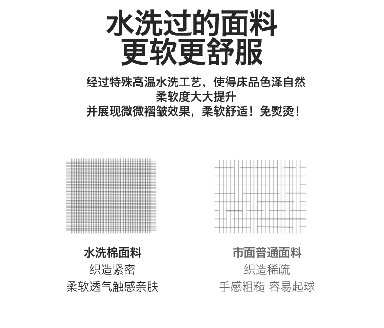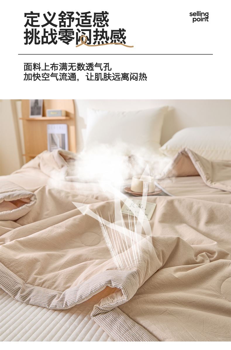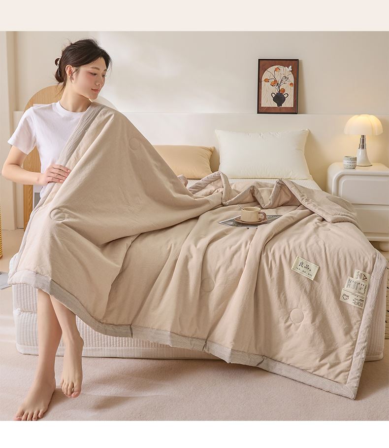 面料:水洗柔肤面料(聚酯纤维) 填充:21%大豆改性纤维+79%聚酯纤维 规格:200cm*230cm 包装:精美软包 无印风亲肤水洗棉裸肤触感,满足肌肤的柔顺触感清爽透气耐磨不伤肤四季皆可用享受舒适睡眠健康舒适纤维,大豆蛋白加工制成媲美羊绒的柔软触感,棉的保暖性,绵软不易结团。