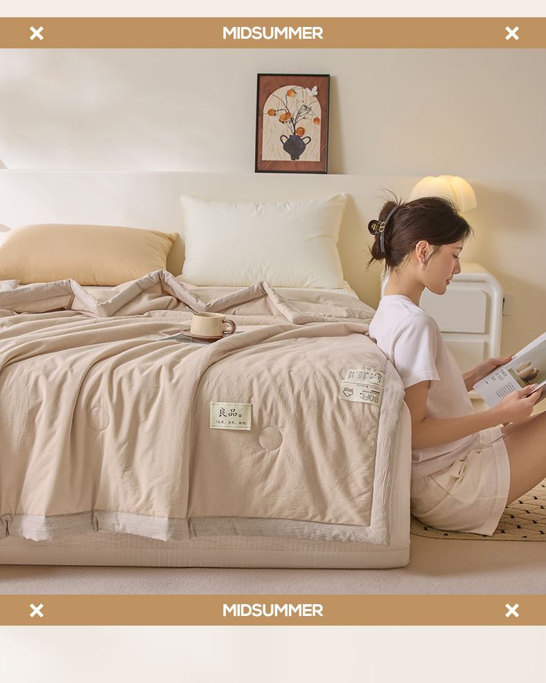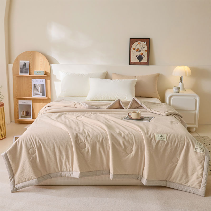 百丽安娜纯色无印风亲肤大豆夏被-卡其
