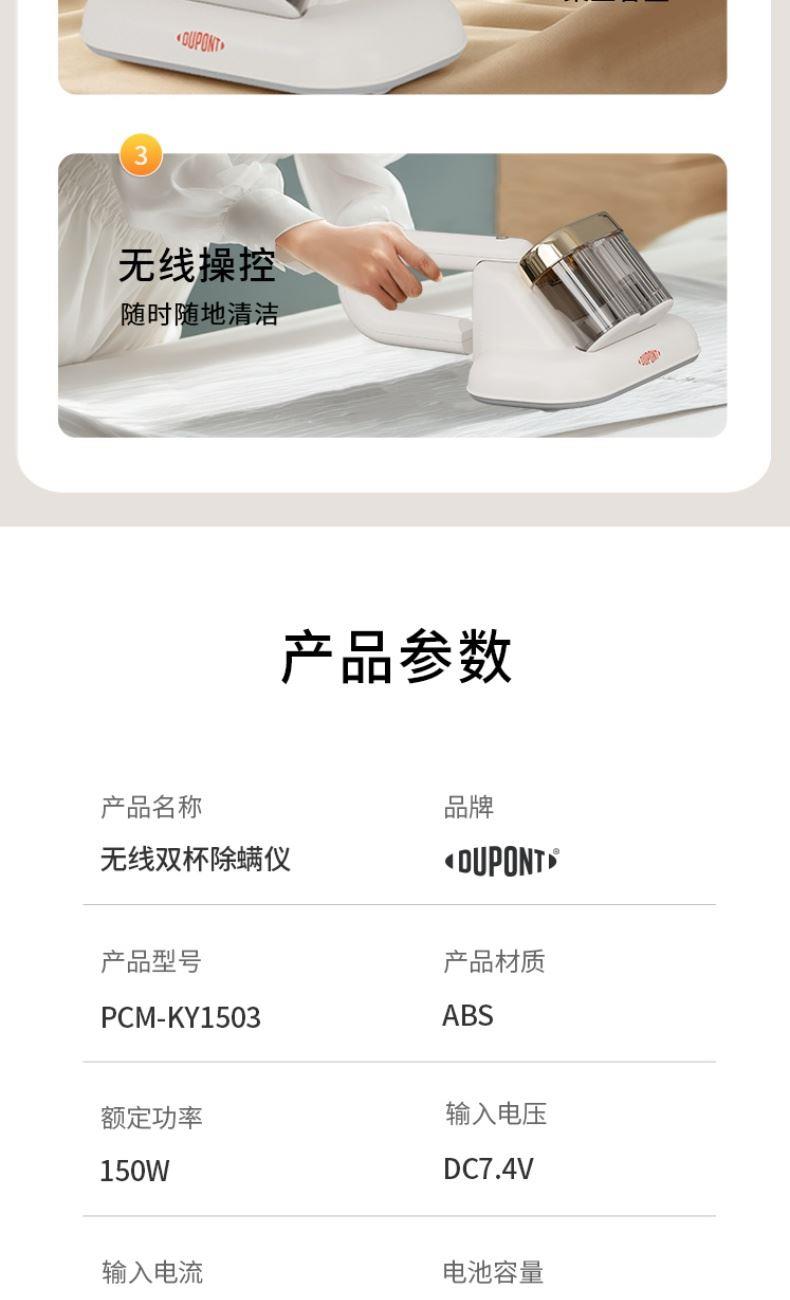 • 杜邦无线双杯除螨仪PCM-KY1503
