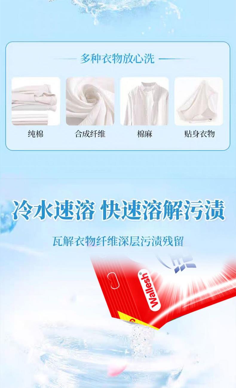产品特点:国标标准洗衣粉!无磷配方,甄选活氧强效去渍成分,强效去渍深层溶解多种顽固污渍,增白增艳。冷水速洁配方,冷热水皆可用,护衣柔软不伤衣,高定香氛持久留香