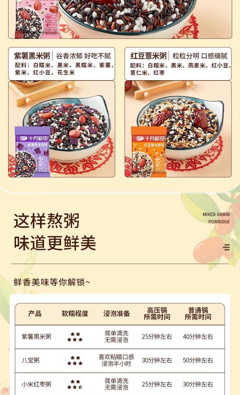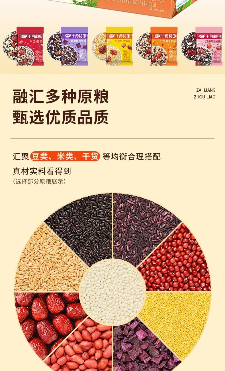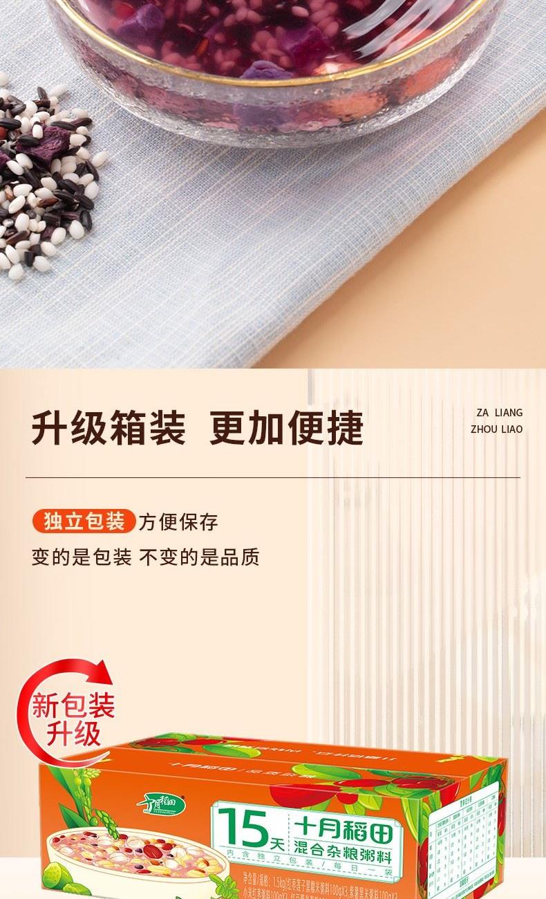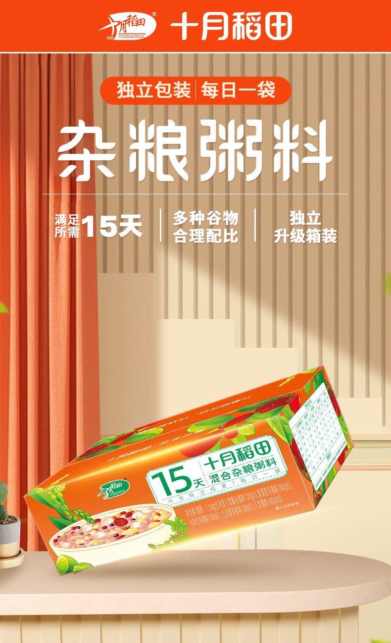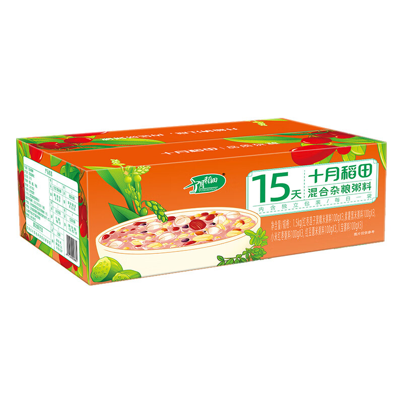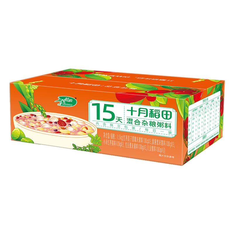 商品:十月稻田混合杂粮粥料 规格:1.5kg 保质期:12个月 不发货区域:新疆、西藏等偏远地区 特点:15天杂粮粥,5种口味组合装,多种谷物,真材实料看得到,美味搭配每一天