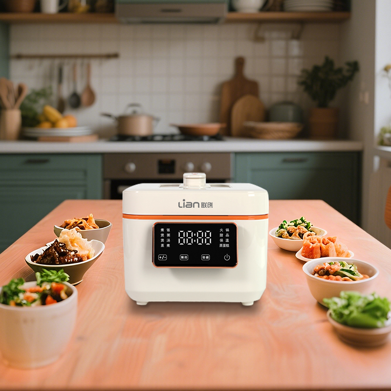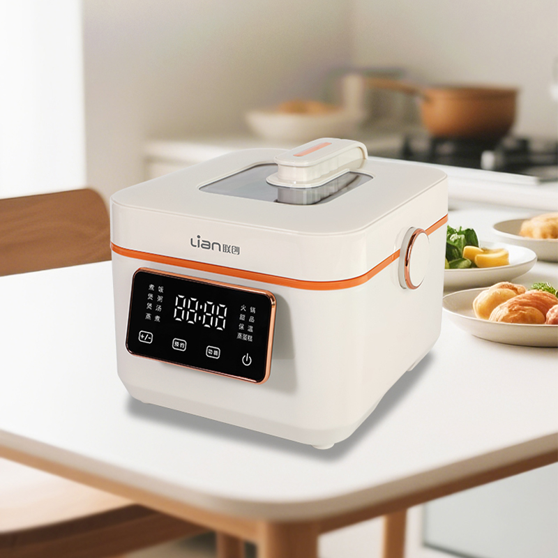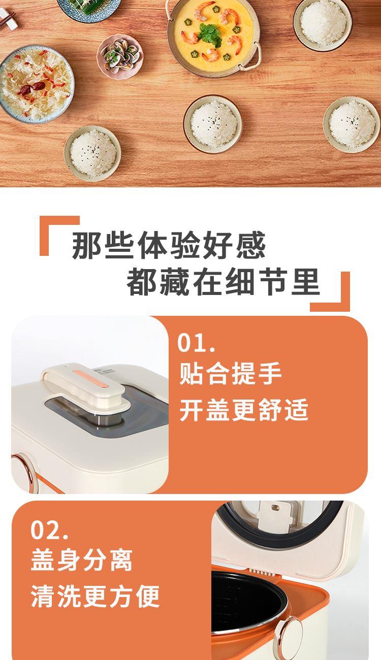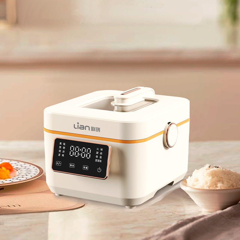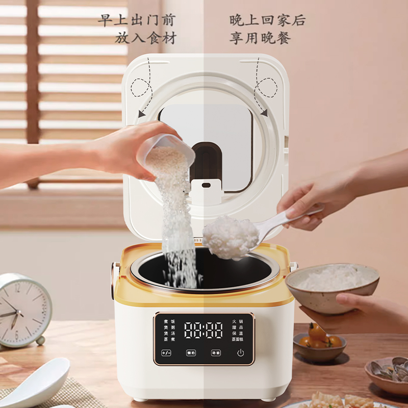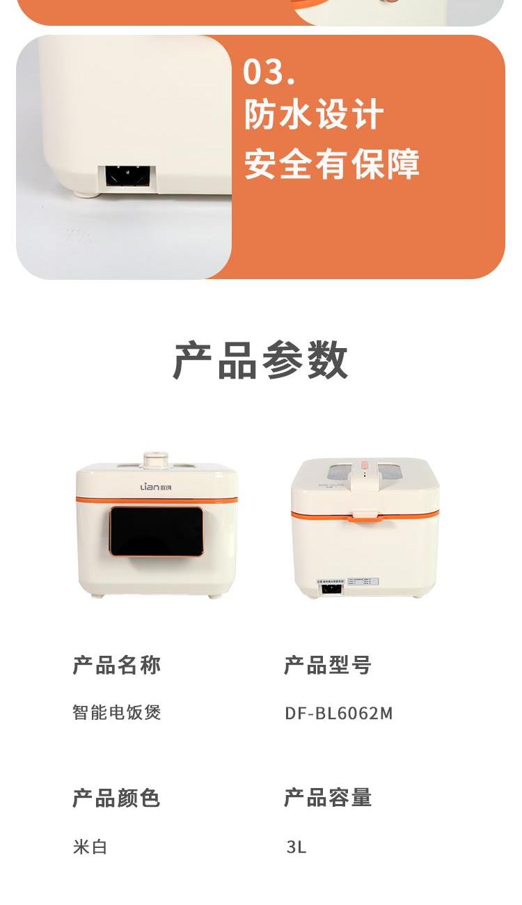 产品参数 额定电压:220V~ 额定频率:50Hz 电热功率:700W 额定容量:3L 产品净重:2.3kg 产品毛重:2.7kg 彩盒尺寸:345X286X237mm 外箱尺寸:592X360X494mm 产品特点 1、黄金仰角横屏大数码显示触控面板; 2、创新高颜值可视上盖,实时查看烹饪状态; 3、锅盖采用旋钮把手方式开合,锅、盖分离即可享受 火锅带来的欢乐; 4、3L精巧容量,满足全家需求; 5、24小时智能预约功能。