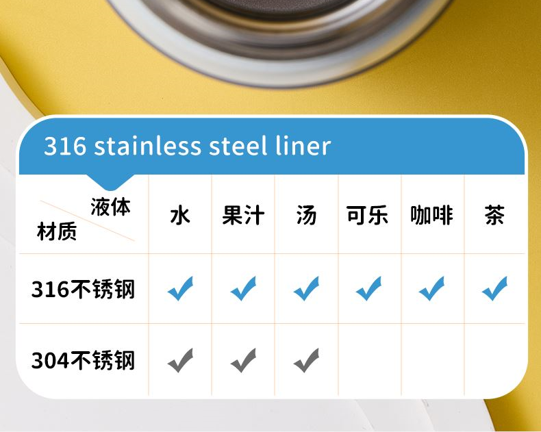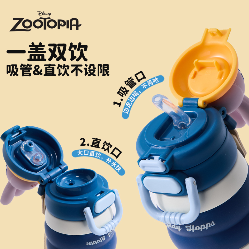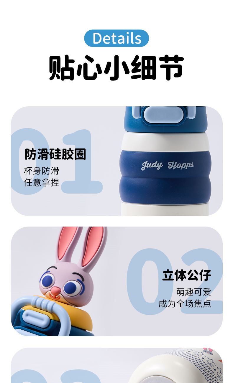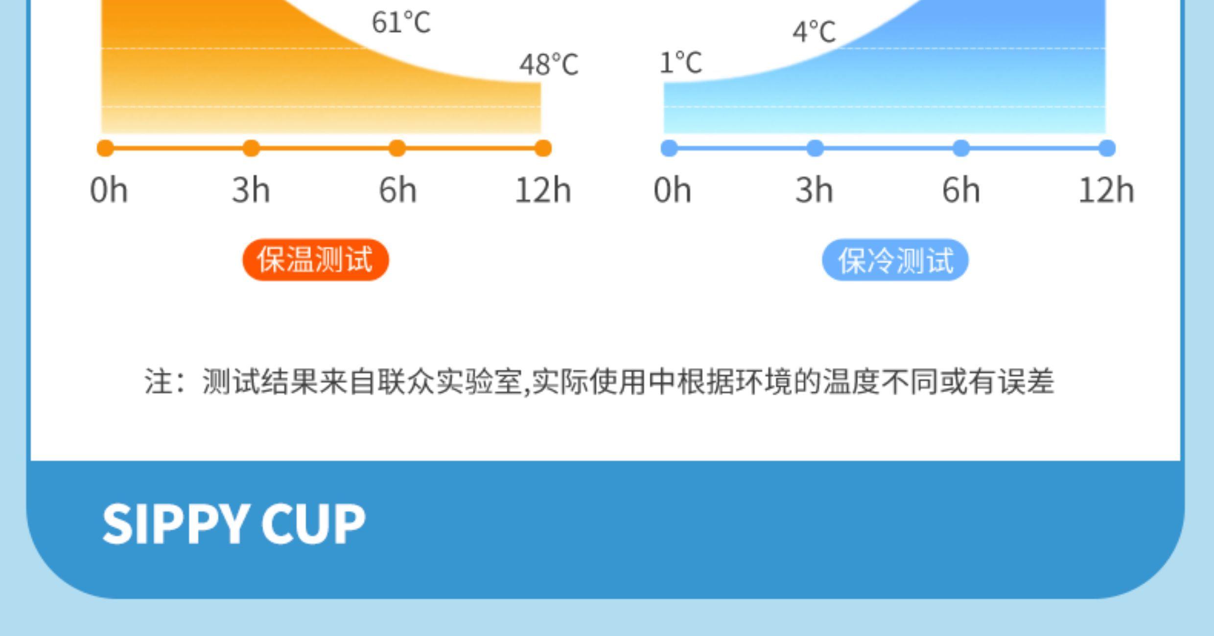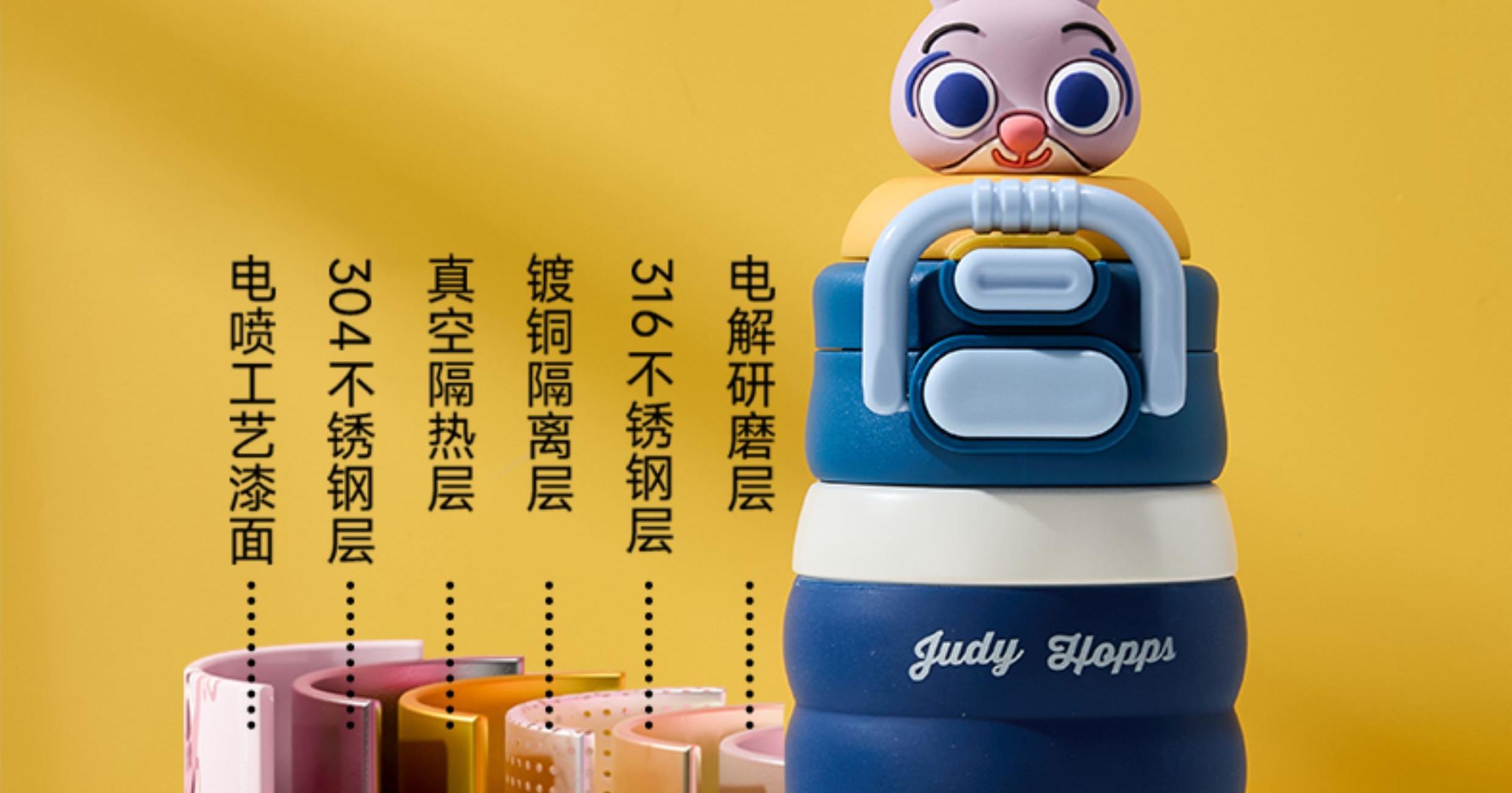 容量:480ml 尺寸:7.2*7.2*28CM 材质:PP、硅橡胶、内胆:316材质 卖点: ①一盖双饮,吸管&直饮不设限 ②密封锁扣,防止误触 ③6层锁温,12小时长效护航 ④316不锈钢入口倍感安心,优选食物接触用不锈钢材质 ⑤提绳设计一拎即走出行方便 ⑥防滑硅胶圈、立体公仔、防滑杯垫