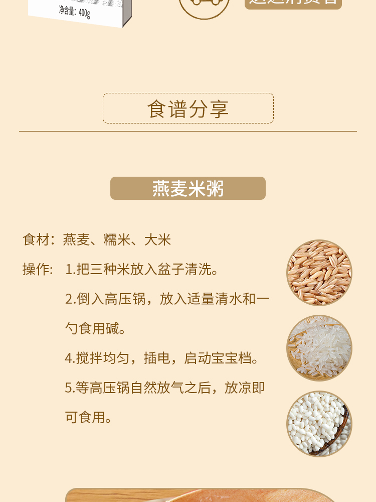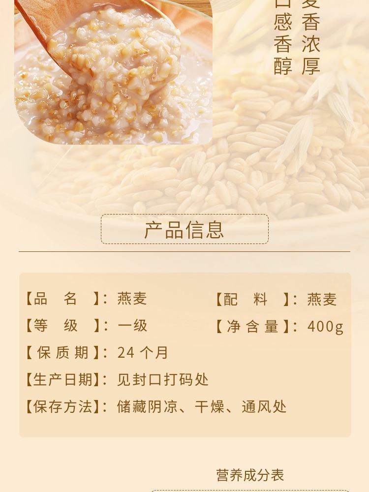 注:该产品二盒起发! 配料:燕麦 净含量:400g 等级:一级 保质期:24个月