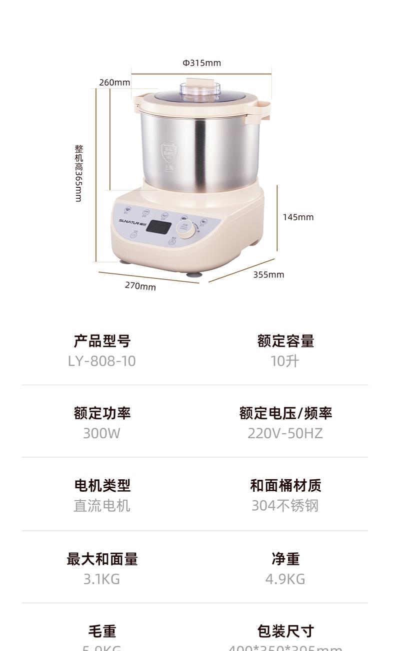 顺然SUNATUR定时发酵直流和面机标配版LY-808-10