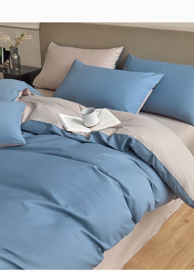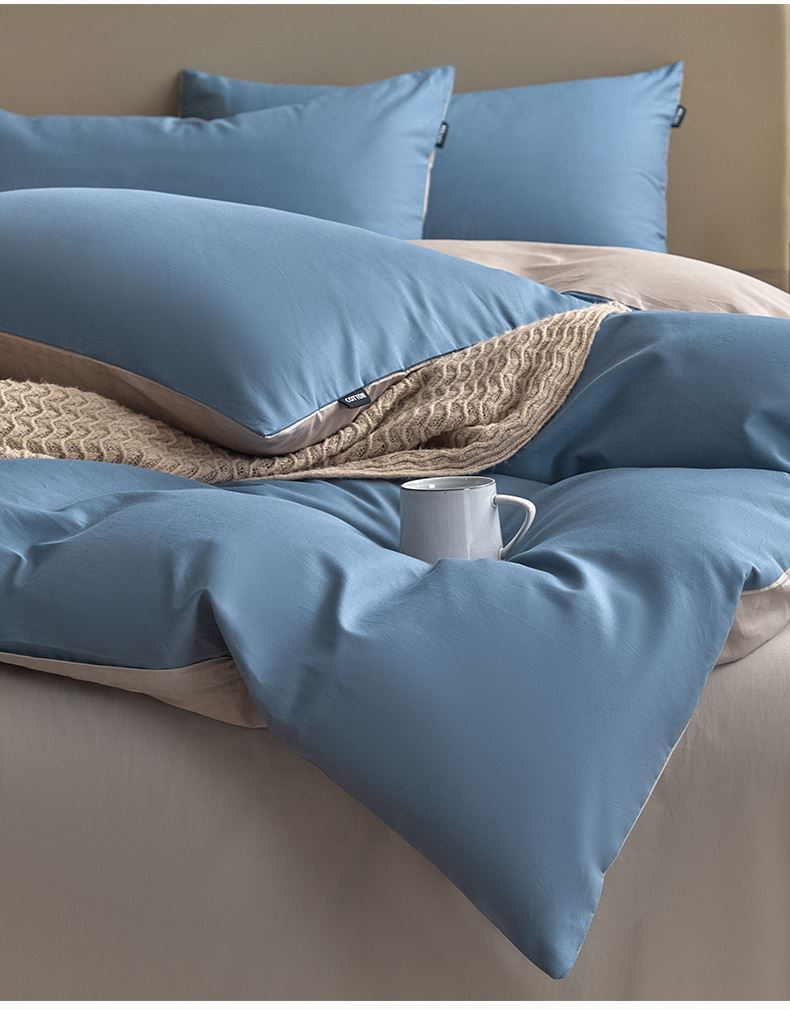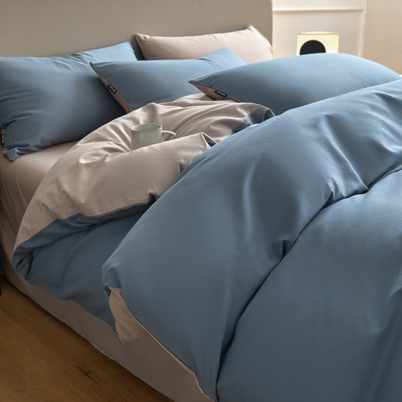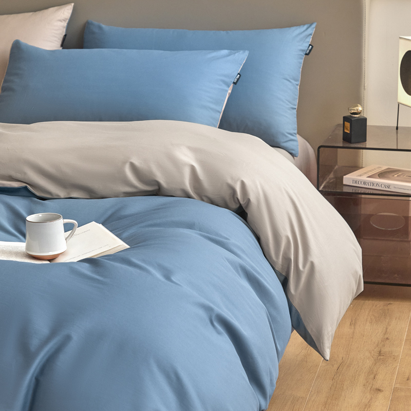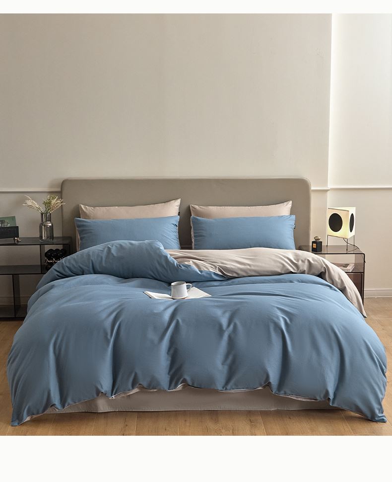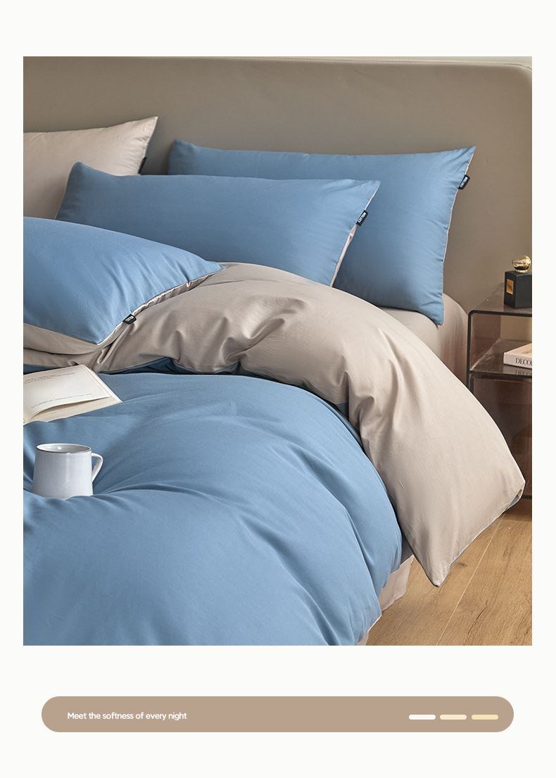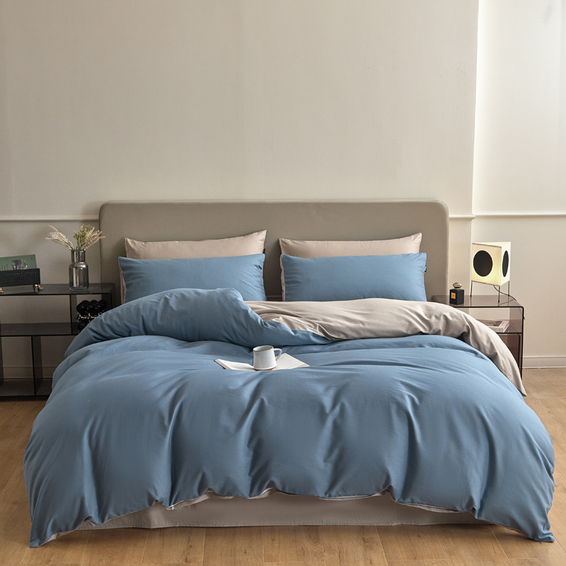 百丽安娜纯色极简全棉四件套-蓝灰