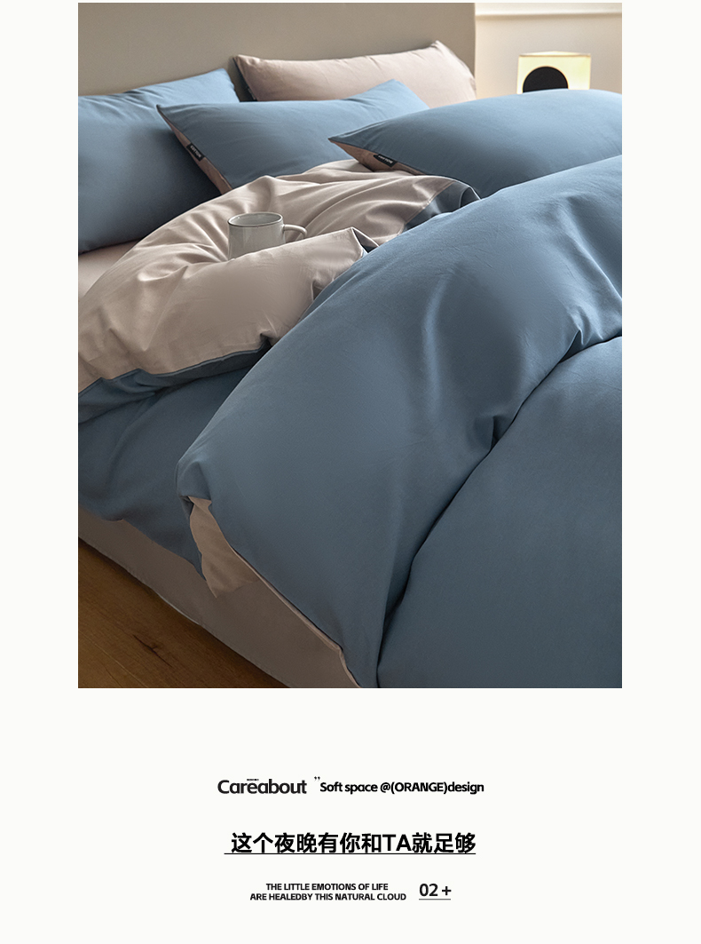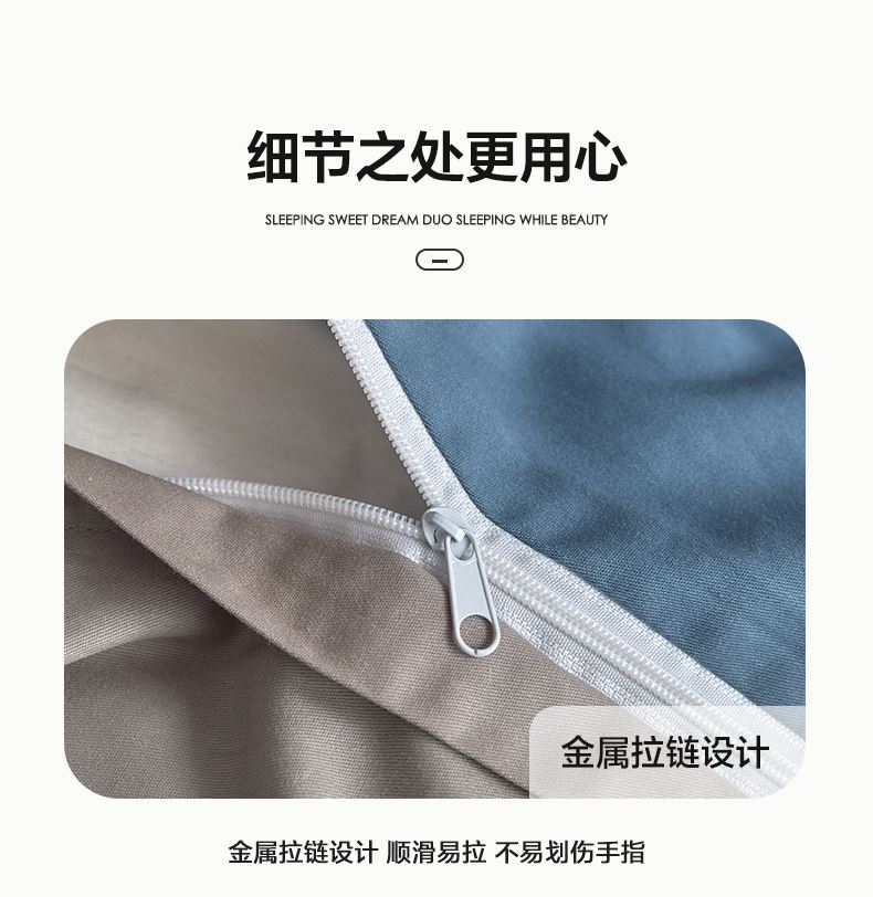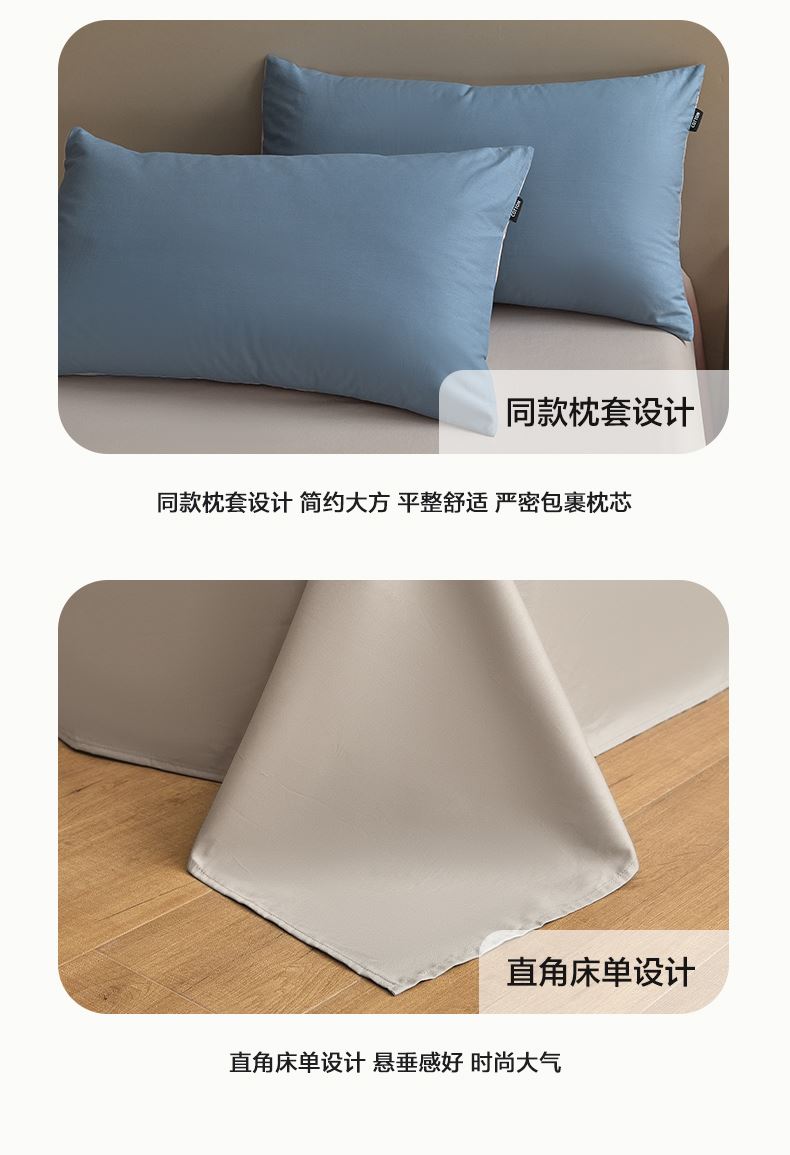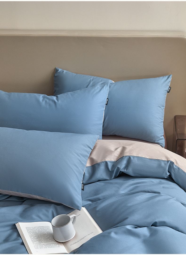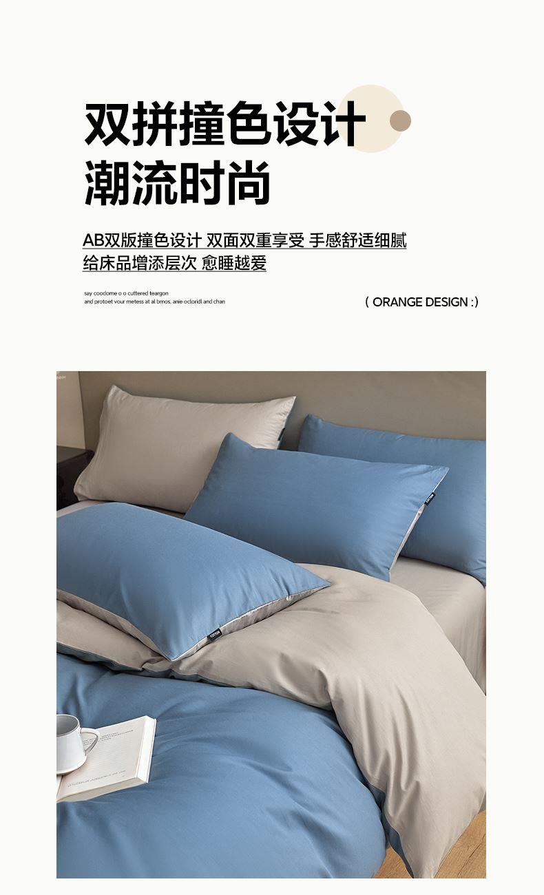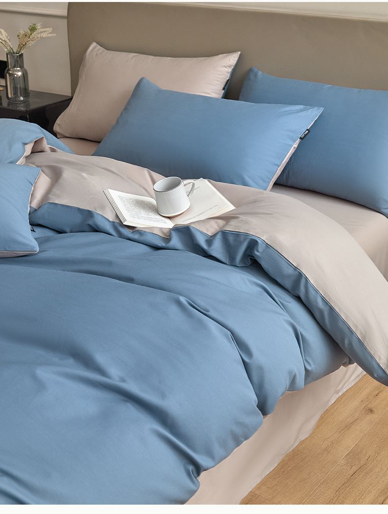 百丽安娜纯色极简全棉四件套-蓝灰