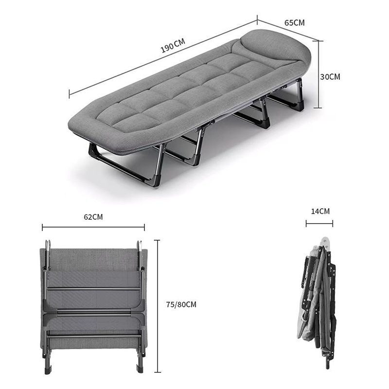 材质: 亲肤透气棉麻布 +防锈烤漆钢管 颜色:浅灰 规格:190*65*30cm 净重:6.5kg 承重:120-130kg 1、免安装,展开即用; 2、8脚支撑,承重更强更稳; 3、折叠收纳,不占空间 ; 4、亲肤棉麻布料,舒适透气; 5、6档可调节,带枕头,可睡可躺