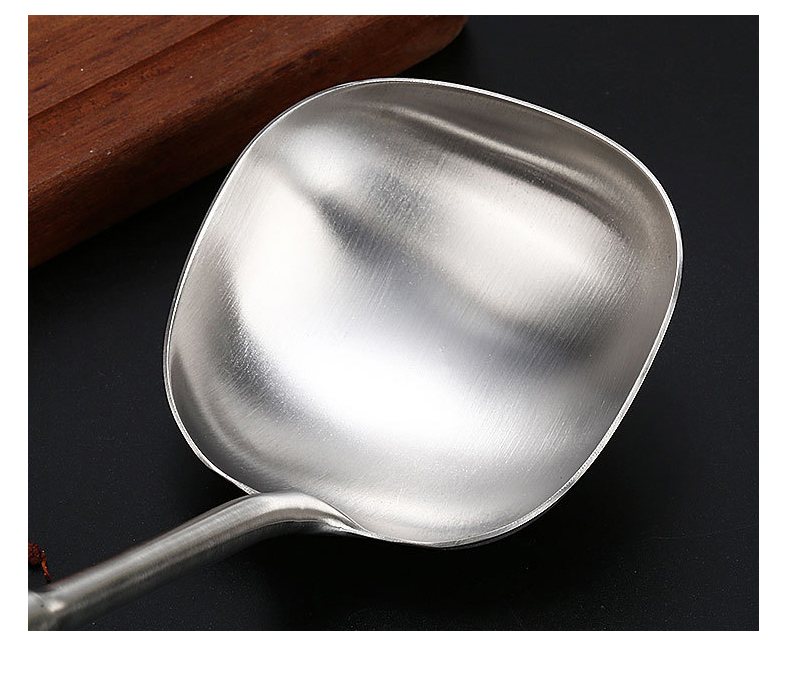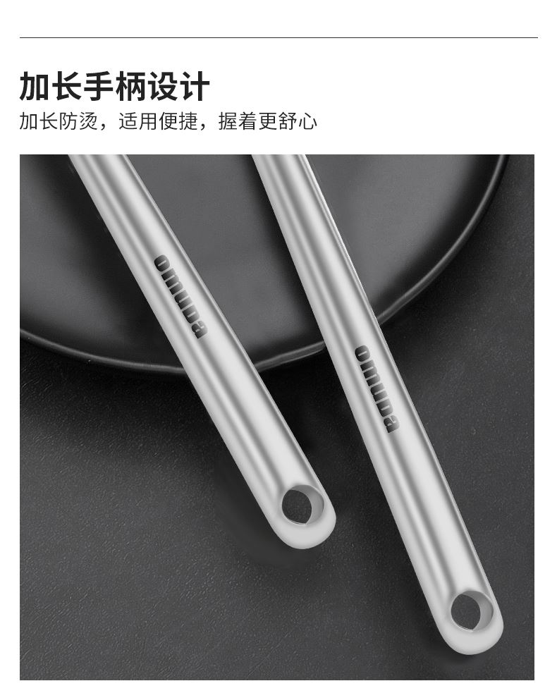 尺寸:33.5cm 材质:304不锈钢 净重:0.12kg ①采用优质304不锈钢材质,坚固耐用,人体工程学手柄设计,防热隔烫,手感更舒适 ②选砂光工艺处理,不易产生刮痕,圆筒状手柄便于抓握,带给您便捷的烹饪体验 ③整体不锈钢材质,易清洁,无卫生死角,耐腐蚀、安全卫生