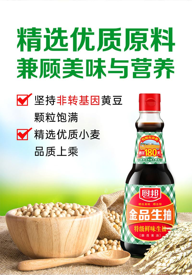 厨邦 金品生抽410ml*1 厨邦 特级老抽150ml*1 厨邦 9°米醋420ml*1 厨邦 原晒香黄豆酱210g*1 厨邦 芝麻浓香食用植物调和油150ml*1 厨邦 多一点美味礼盒*1