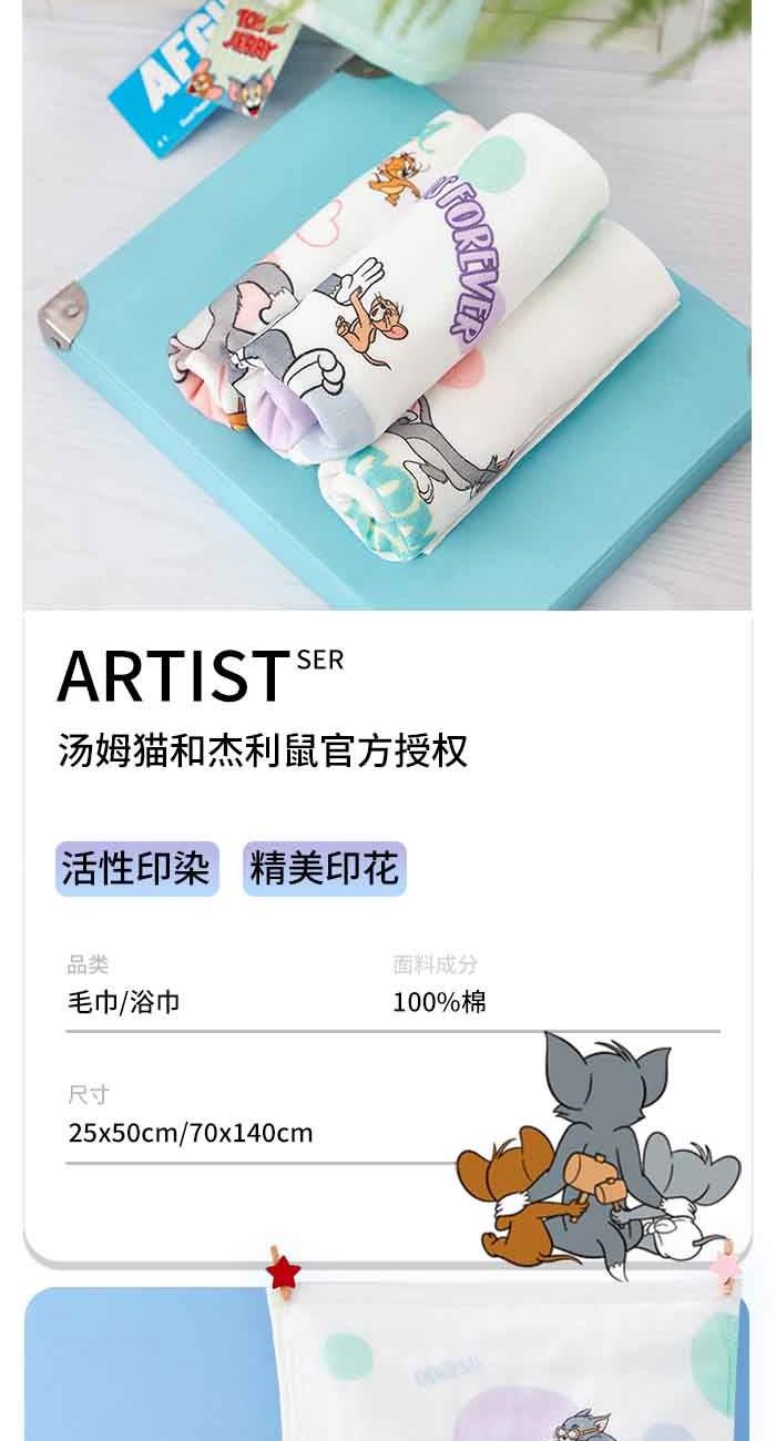 猫和老鼠纱布毛浴巾组合轻薄可爱A类敏感肌适用