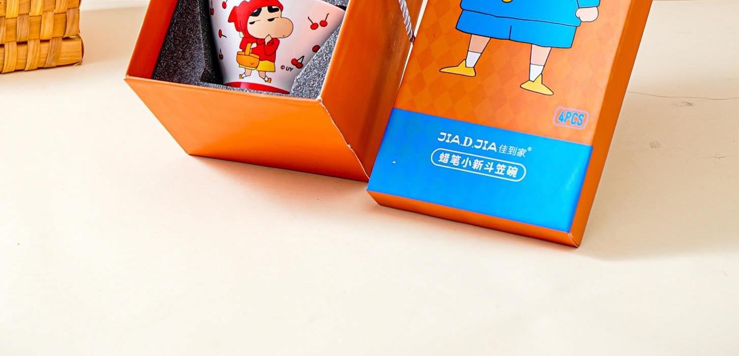 蜡笔小新斗笠碗4件套 规格:一箱16套 5寸大号斗笠碗,吃面吃米都适宜 [庆祝]<礼盒包装将心意以礼递之> [庆祝]<心动预警 pick你的偏爱;安心享美食 色彩鲜艳久不褪色> [庆祝]<斗笠造型 端拿舒适 上宽下窄,别致优雅的造型>